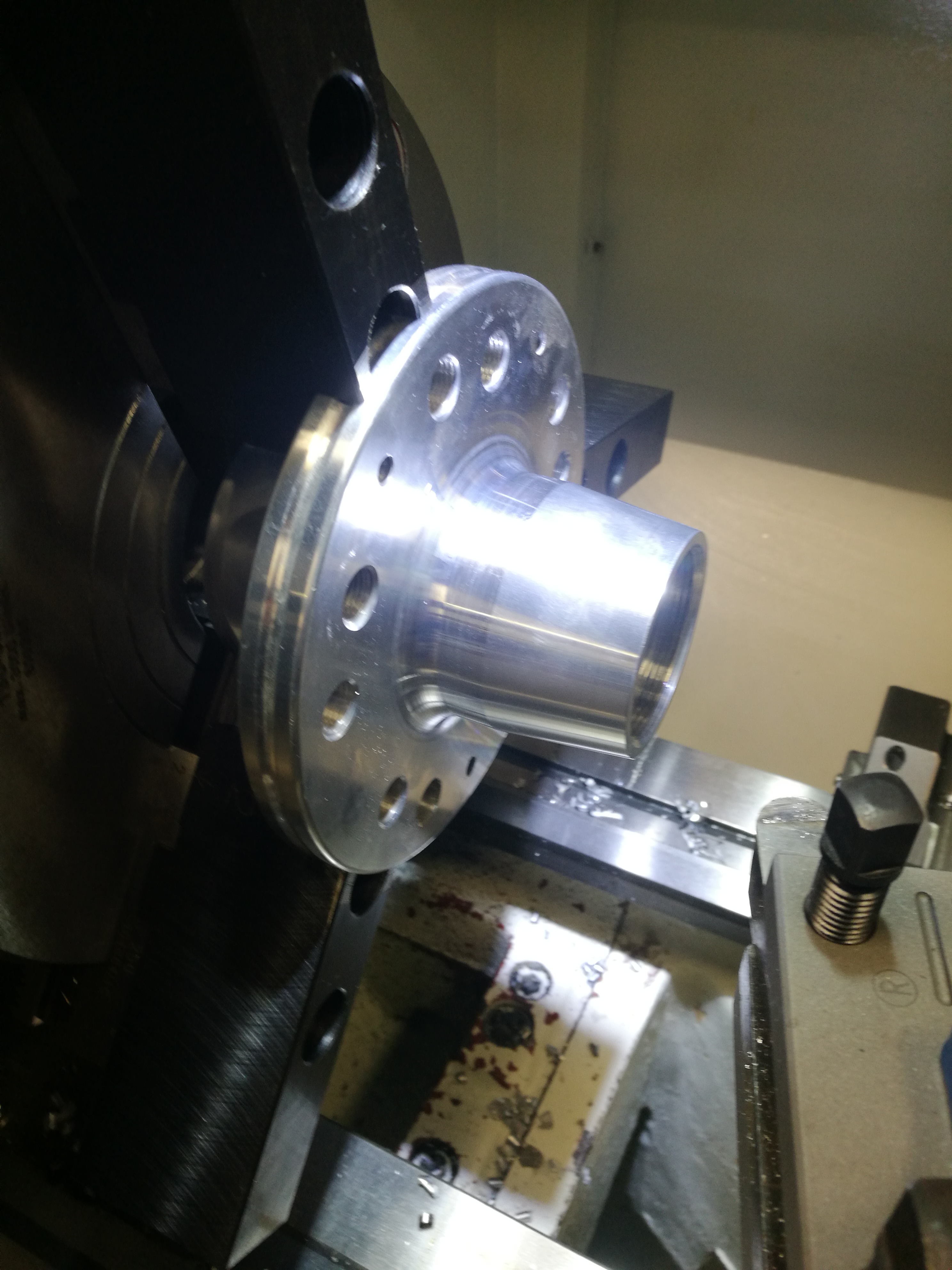 -Tournage des moyeux en alu qui n'ont pas de portée de base ('j'aime pas le centrage par les goujons). Le montage sera fait avec une douille qui centre le disque et la jante.