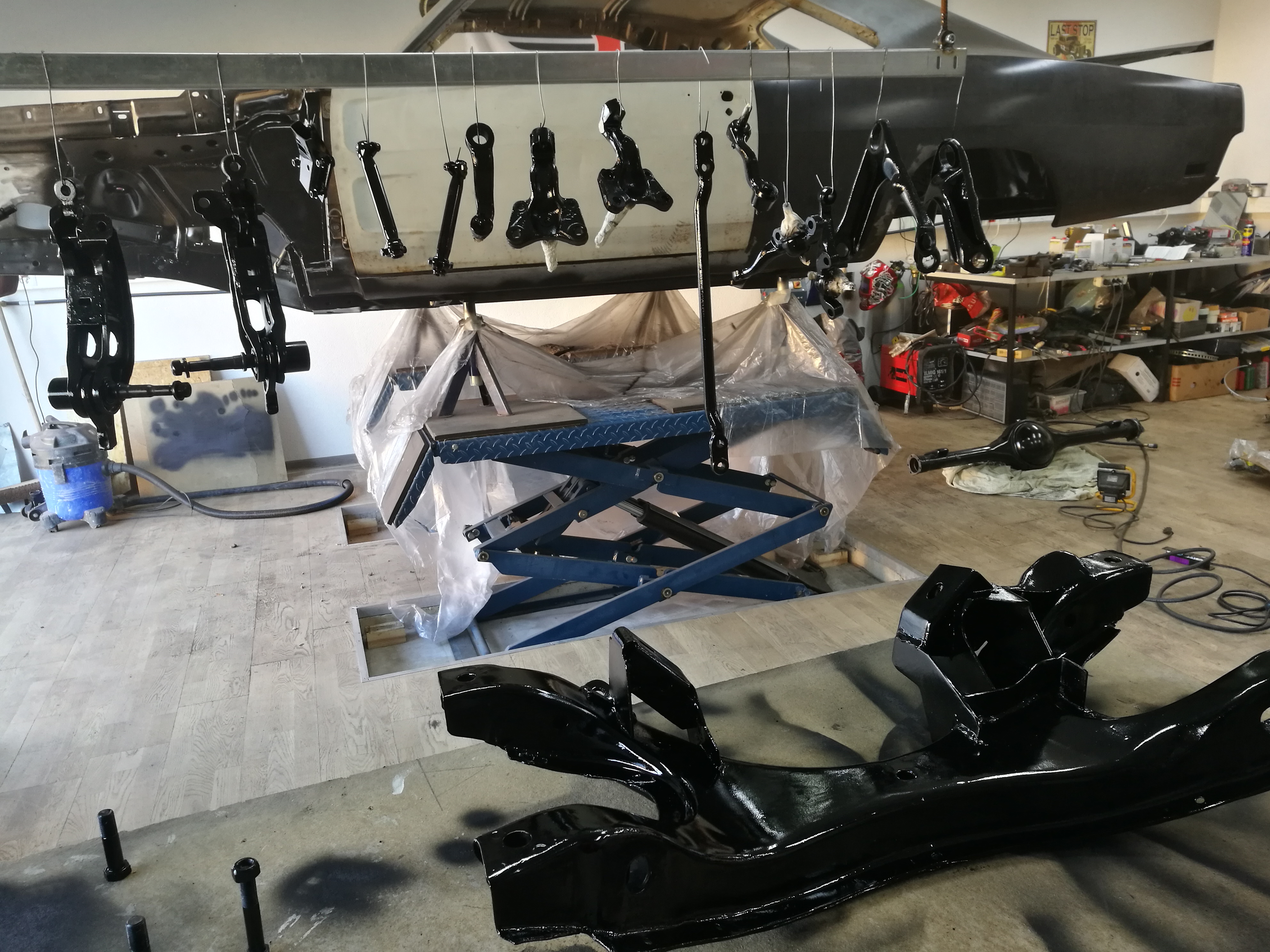 -Mise en peinture de toute la suspension, la direction et du K member en attendant la grosse commande Summit avec un boîtier Borgeson, collecteurs, échappement etc...