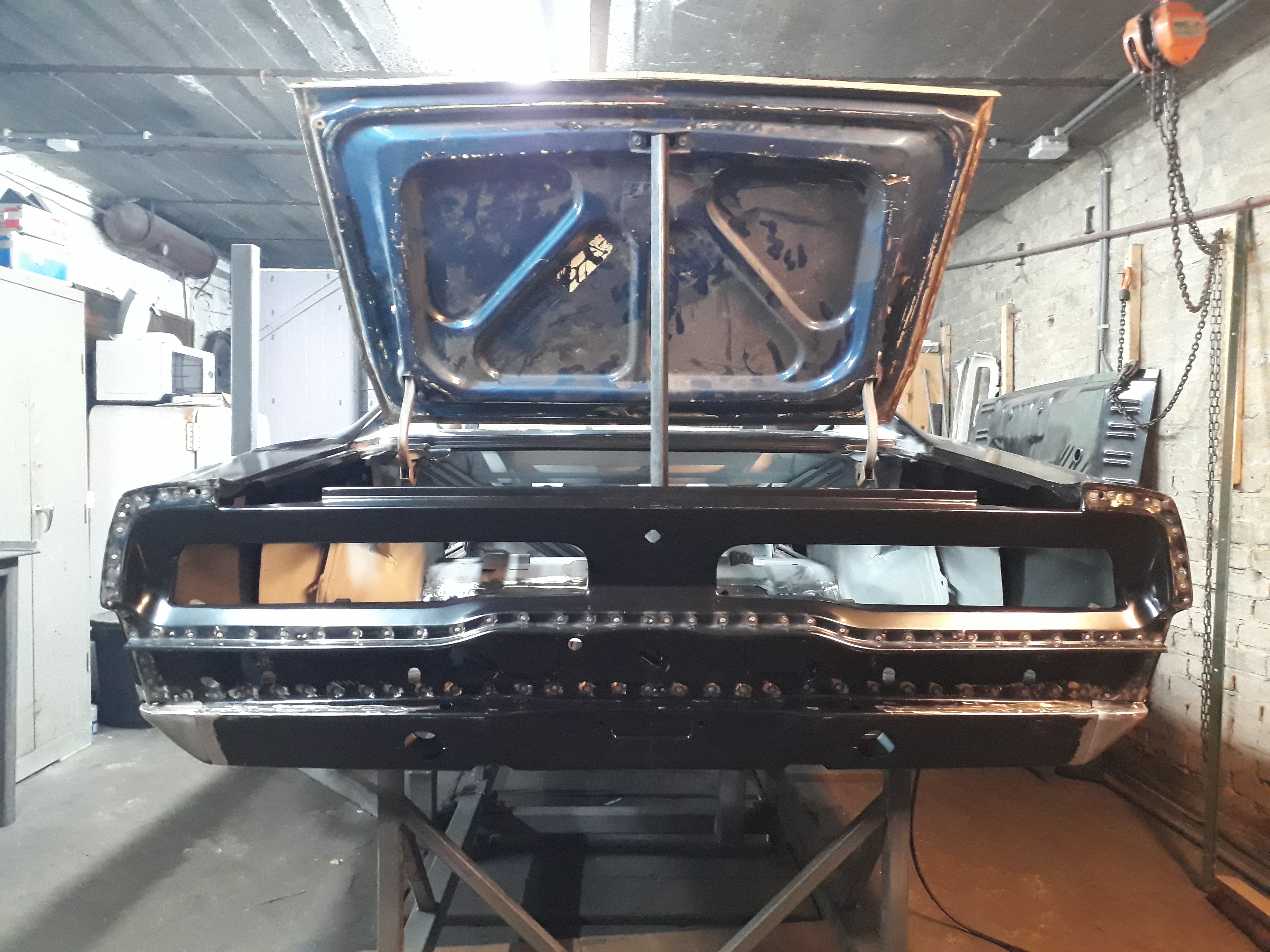 ), deck lid filler panel, je replace les support de charnière de la malle ( qu'il a fallu modifier, bah oui ils vont sur les passage de roues qui ont été... modifiés