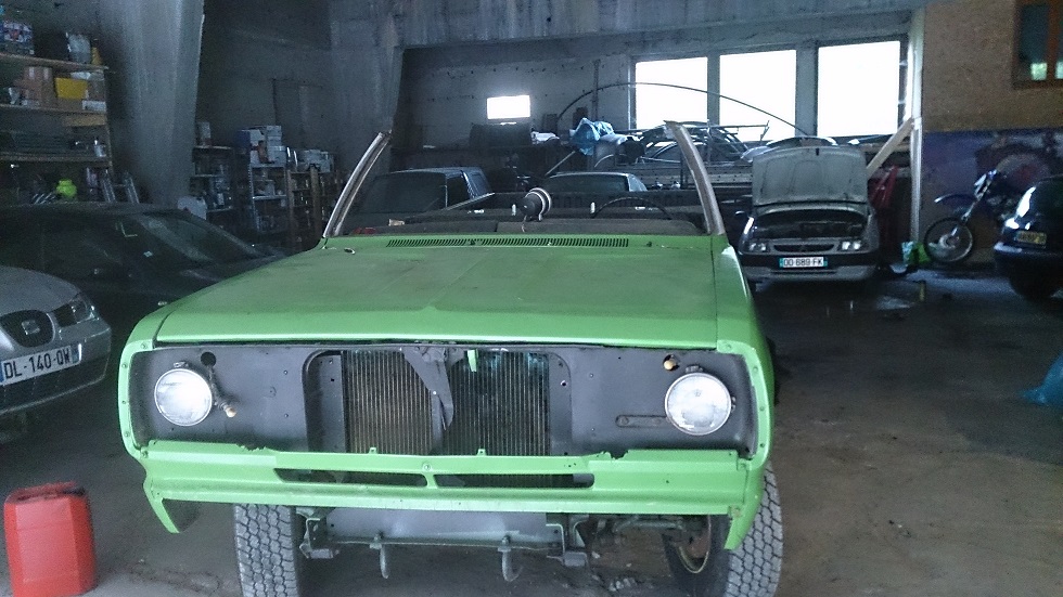 @greco : Tout a fait, il n'y a plus rien en haut du par-brise ! Sous la choucroute, que de la rouille....on a soudé un raidisseur pour éviter que ça bouge, on mettra une couvertine pour joindre le par-brise et le raidisseur. ça a l'air de tenir, quand je suis allé a la cabine de peinture on a mesuré l'écartement avant/après à la descente et a la montée (40km de route de montagne), ça n'avait pas bougé.