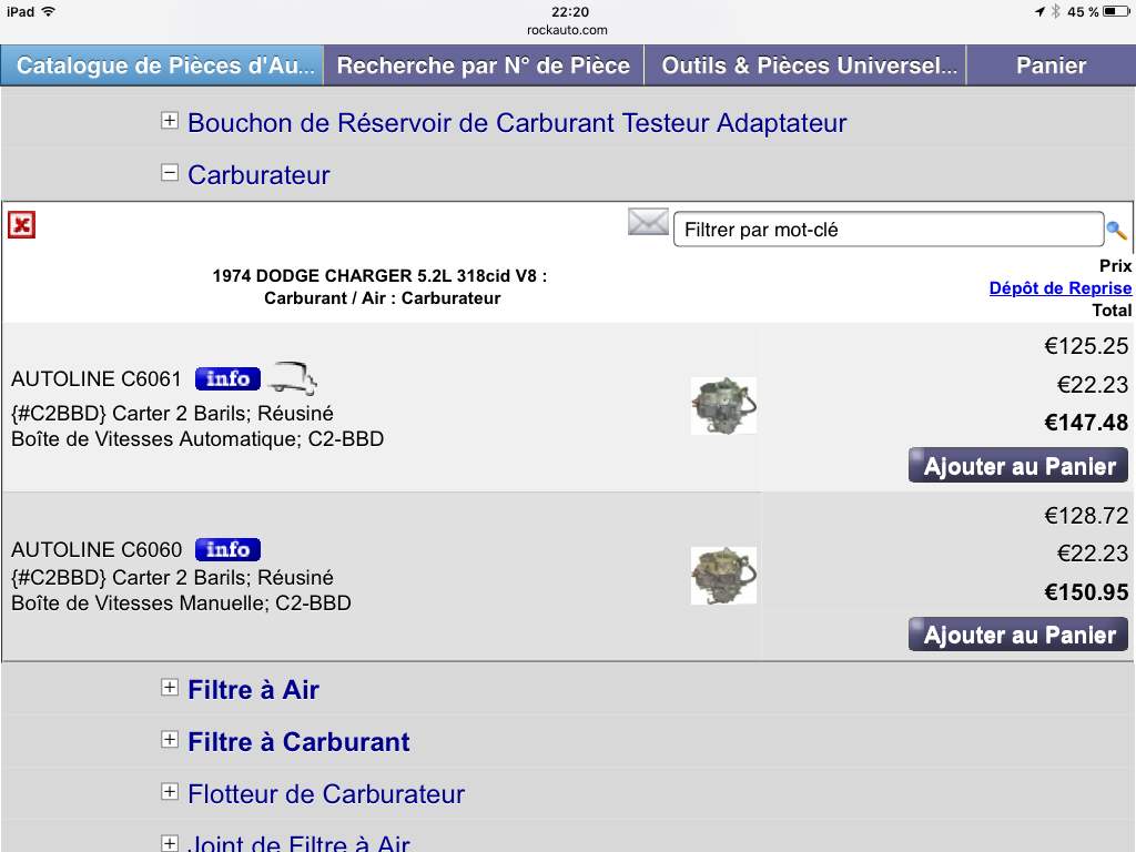 J'ai un doute pour commander mon carbu sur rockauto, je ne trouve pas les mêmes ref.