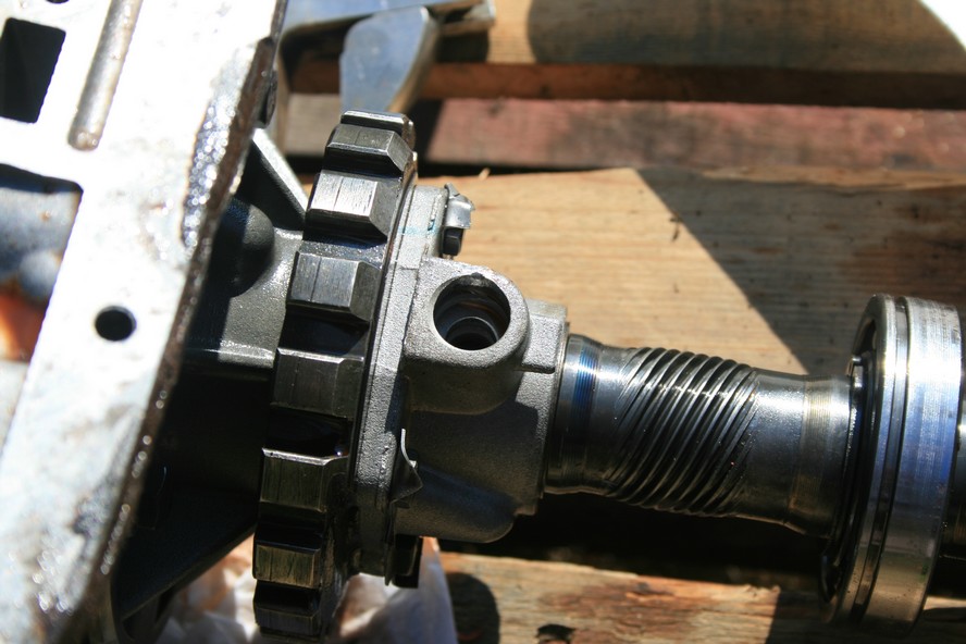 Au passage j'en profite pour montrer la différence d'arbre dentrée( celui qui va dans le converto) entre une boite lock-up et non lock-up. il y a un chanfrein les boites non lockup n'en nont pas . ON PEUT SEULEMENT MONTER UN CONVERTO LOCK UP SUR UNE BOITE LOCKUP. L es convertos non lockup ne sont pas interchangeables et adaptés pour ces boites la. :whistle: :whistle: