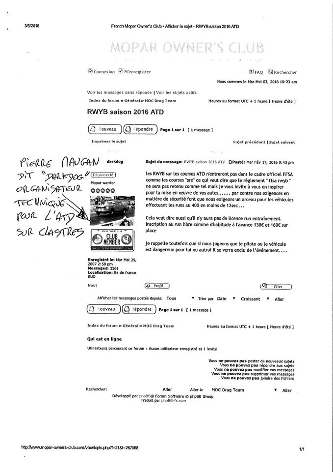 Il ne sert à rien de vouloir vous faire passer pour un pilote évoluant sur notre trophée, c’est vraiment mal connaitre la philosophie du sport automobile et encore moins celle du dragster. Nous ne comprenons pas quel moustique vous a piqué mais le public et les pilotes avaient le droit de recevoir cette lettre qui les concerne pleinement.