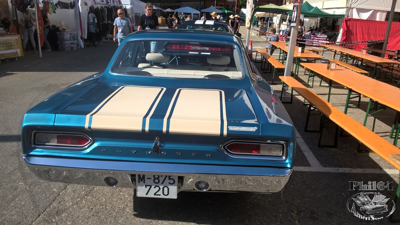 Eh oui, même les espagnols (catalans plutôt) aiment les Mopar, la preuve cette Belvedere 1970 vue hier au Country Rock Festival de Salardu dans le val d'Aran. Notez l'autocollant du coffre ! Au moins on a une haine commune pour le diésel .