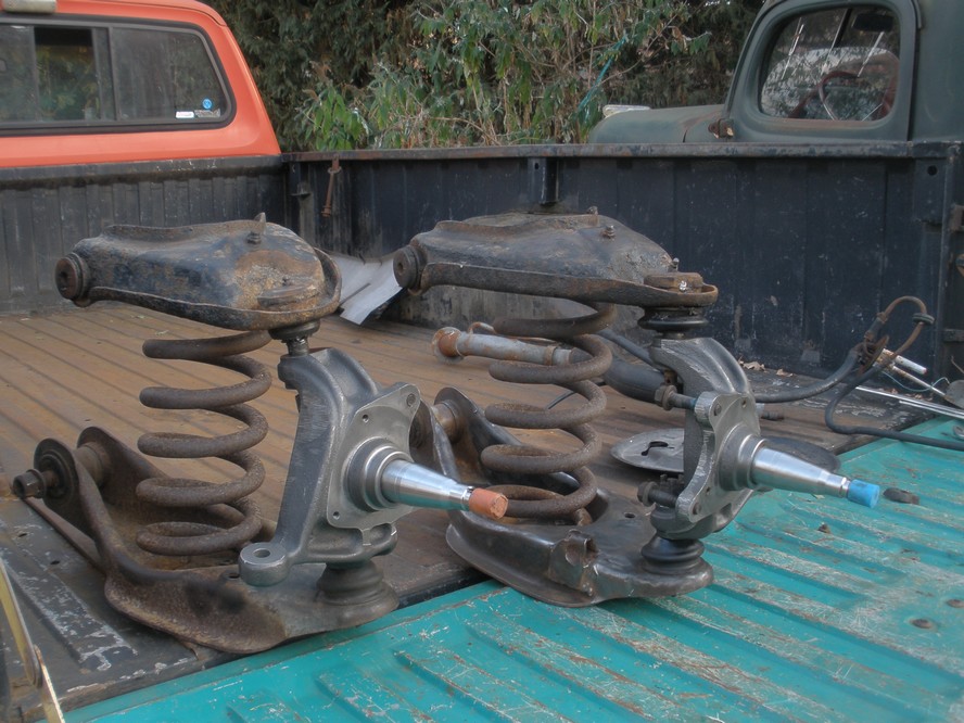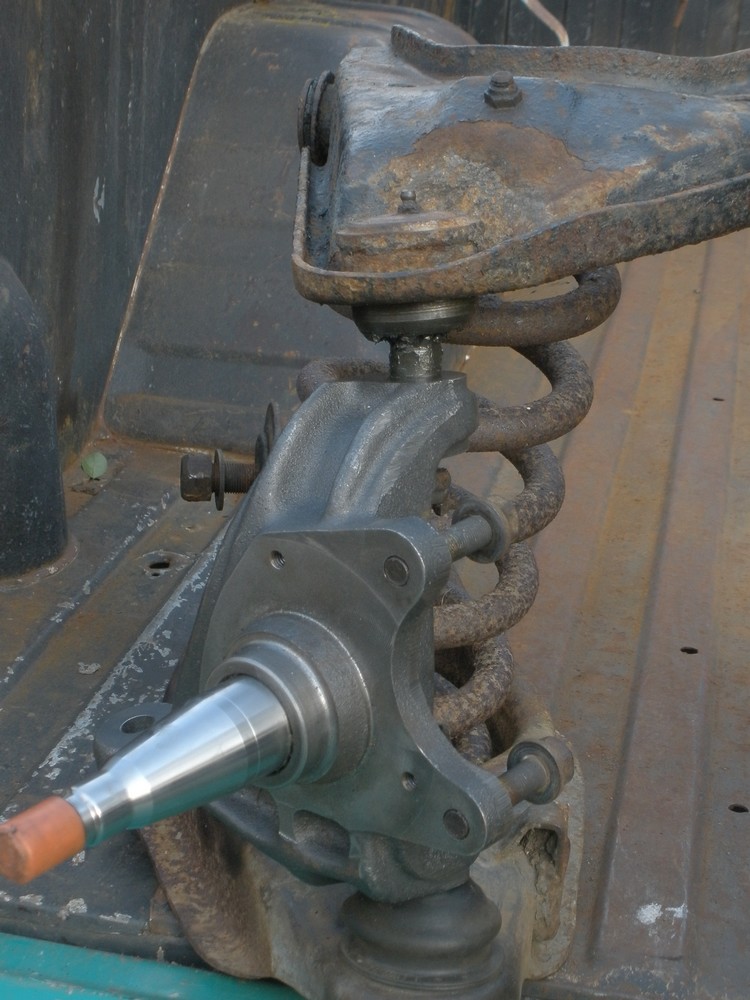 les fusées decalées sont droppées 2" et avec les bras inferieurs pocket style ça devrait sacrément rabaisser l"avant du pickup . j'ai hate d'avoir les disques et roulement pour voir ce que ça donne.