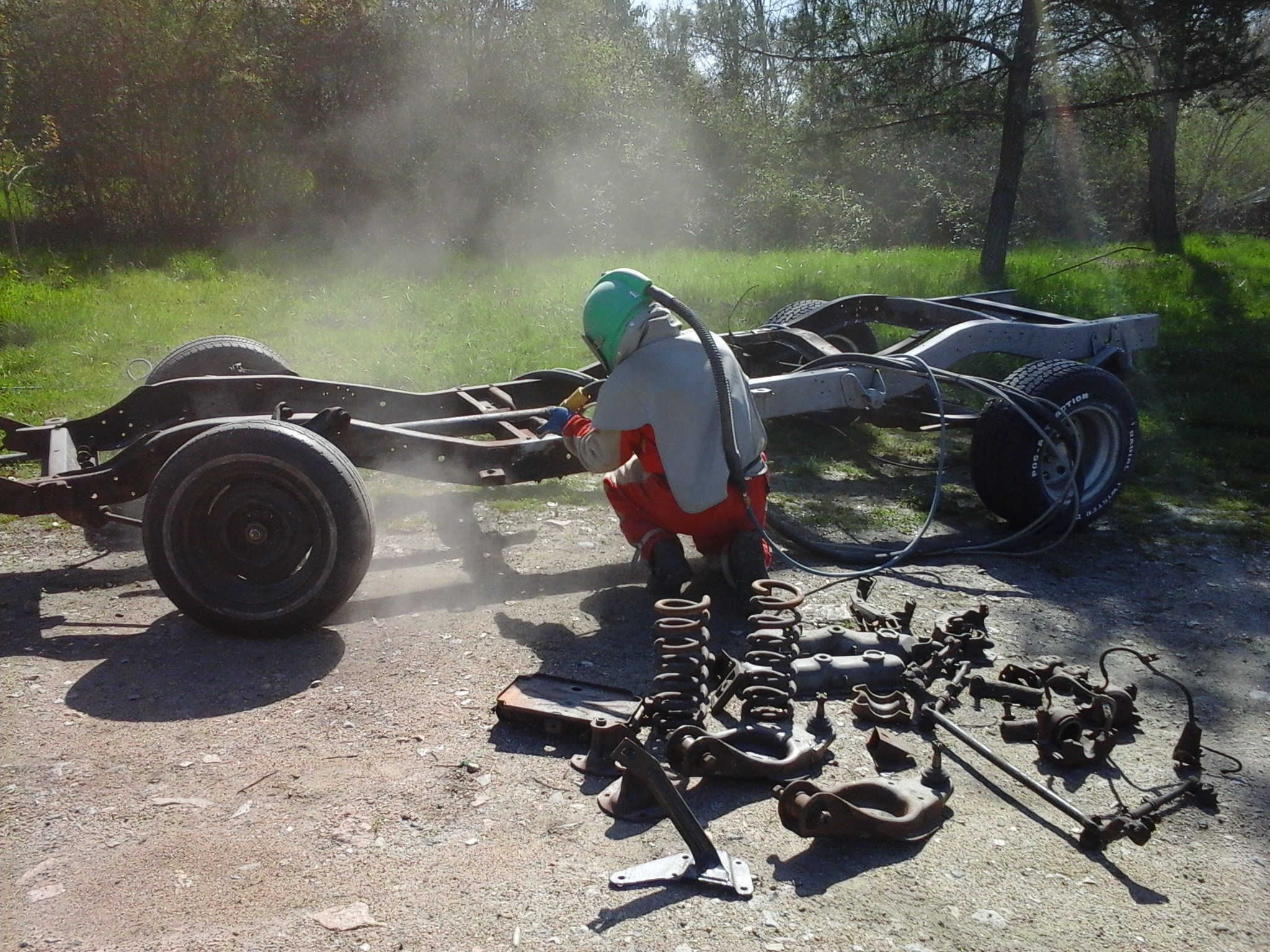 Va falloir attendre un peu toutes les sableuses sont louées et comme je vais louer ça pour un week-end c'est pas trop grave. je vais continuer à preparer mes pieces et le chassis. bonne nouvelle j"ai recuperé des fusées decalées pour dropper l'avant" komyfo"