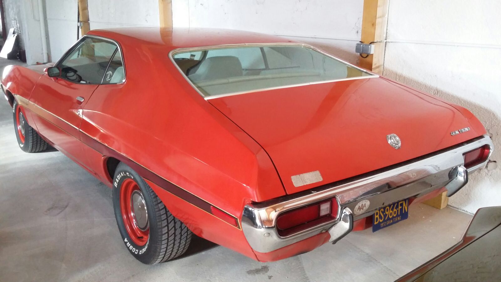 Il me fallait un nouvel engin, aussi j'ai importé de Californie un coupé gran torino fastback de 72. OK... Pas mopar mais elle est sympa cette cacahuète! J'ai bossé cet été sur l'intérieur et surtout les planchers... Qui étaient un peu trop ventilés à mon goût...