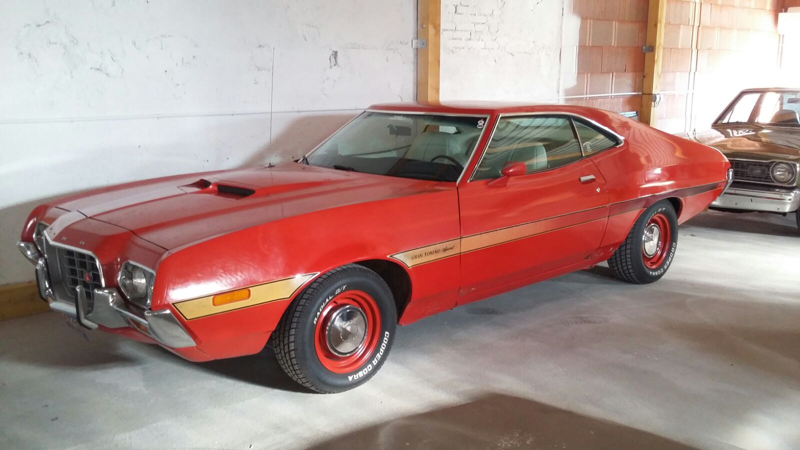 Il me fallait un nouvel engin, aussi j'ai importé de Californie un coupé gran torino fastback de 72. OK... Pas mopar mais elle est sympa cette cacahuète! J'ai bossé cet été sur l'intérieur et surtout les planchers... Qui étaient un peu trop ventilés à mon goût...