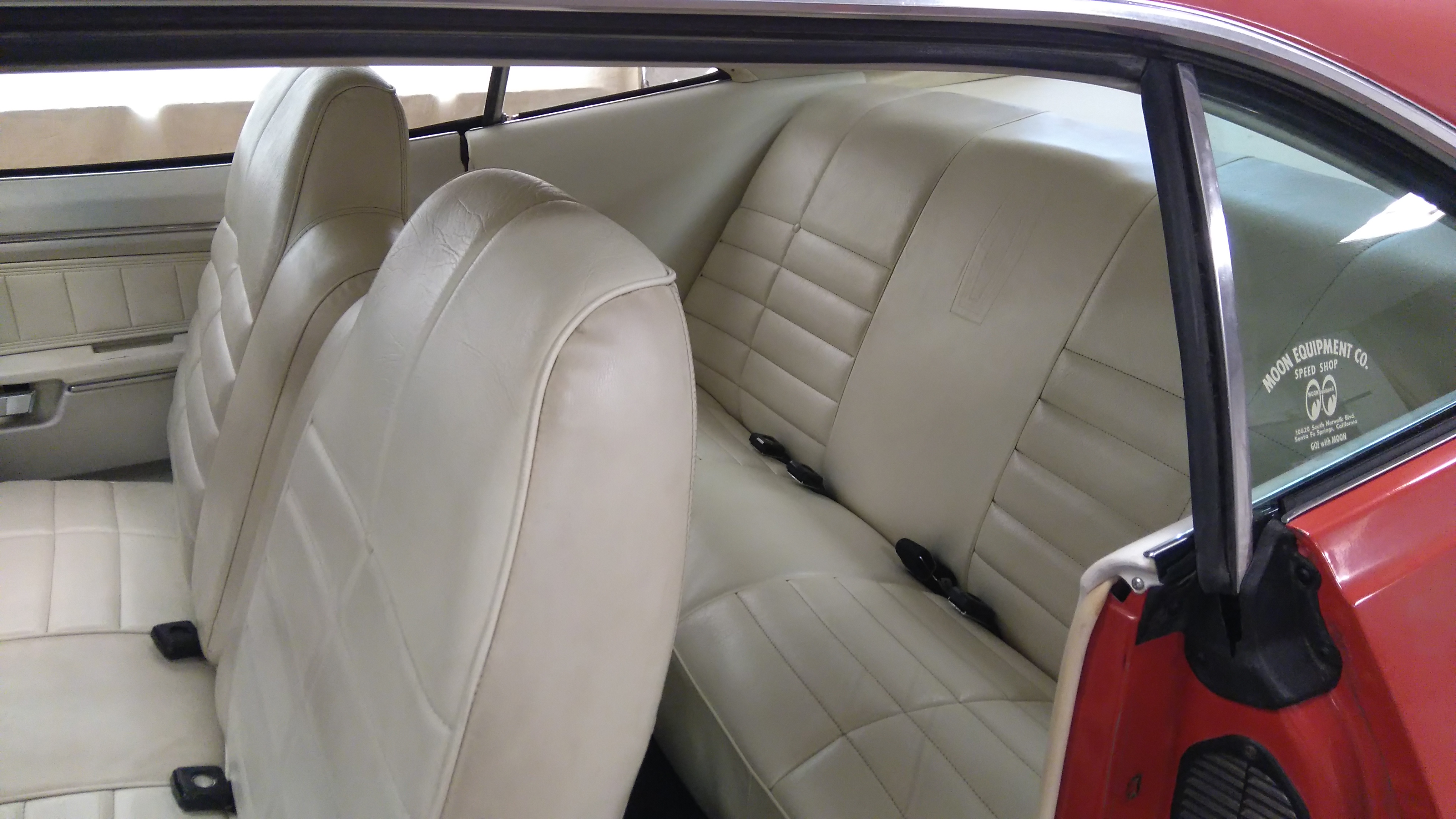 Quelques photos supplémentaires dont un aperçu de l'intérieur. Il me reste à bien nettoyer la banquette avant et à rénover les panneaux de portes. Je me suis occupé des panneaux arrières. De la plage arrière et de la banquette arrière cet été. Le skai blanc, c'est joli... Mais un peu salissant ^^