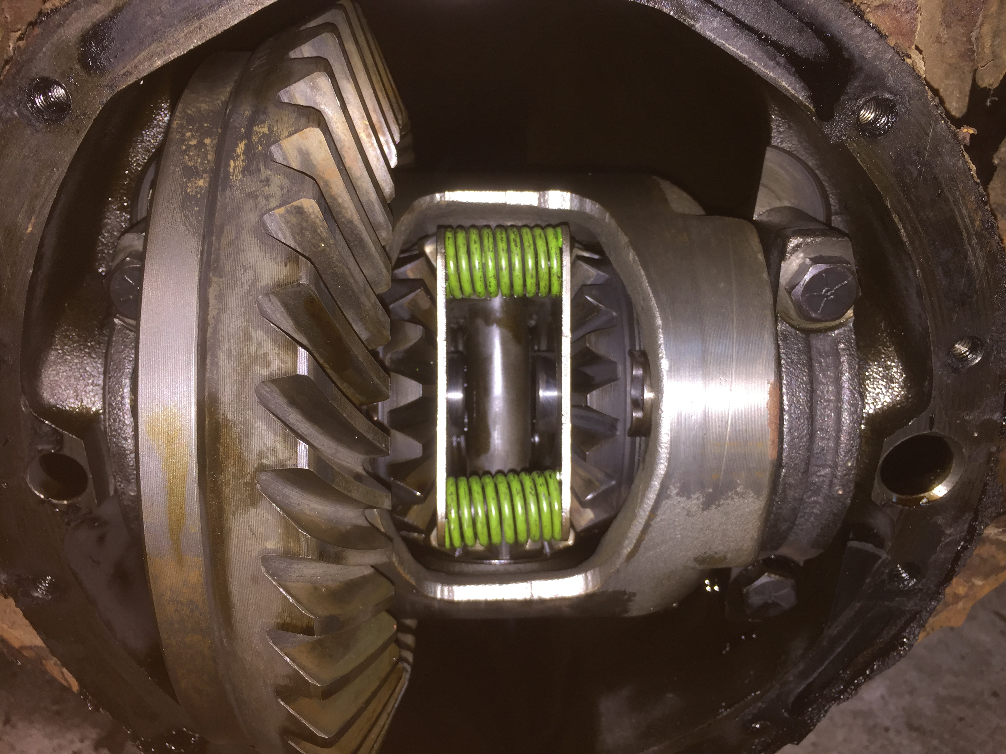 aujourd'hui démontage du pont avant sablage j'ouvre donc la trappe du différentiel a mon avis l'huile est celle d'origine car elle est très épaisse comme du goudron un truc de fou après un petit nettoyage a l'essence pour décoller toute cette mer--