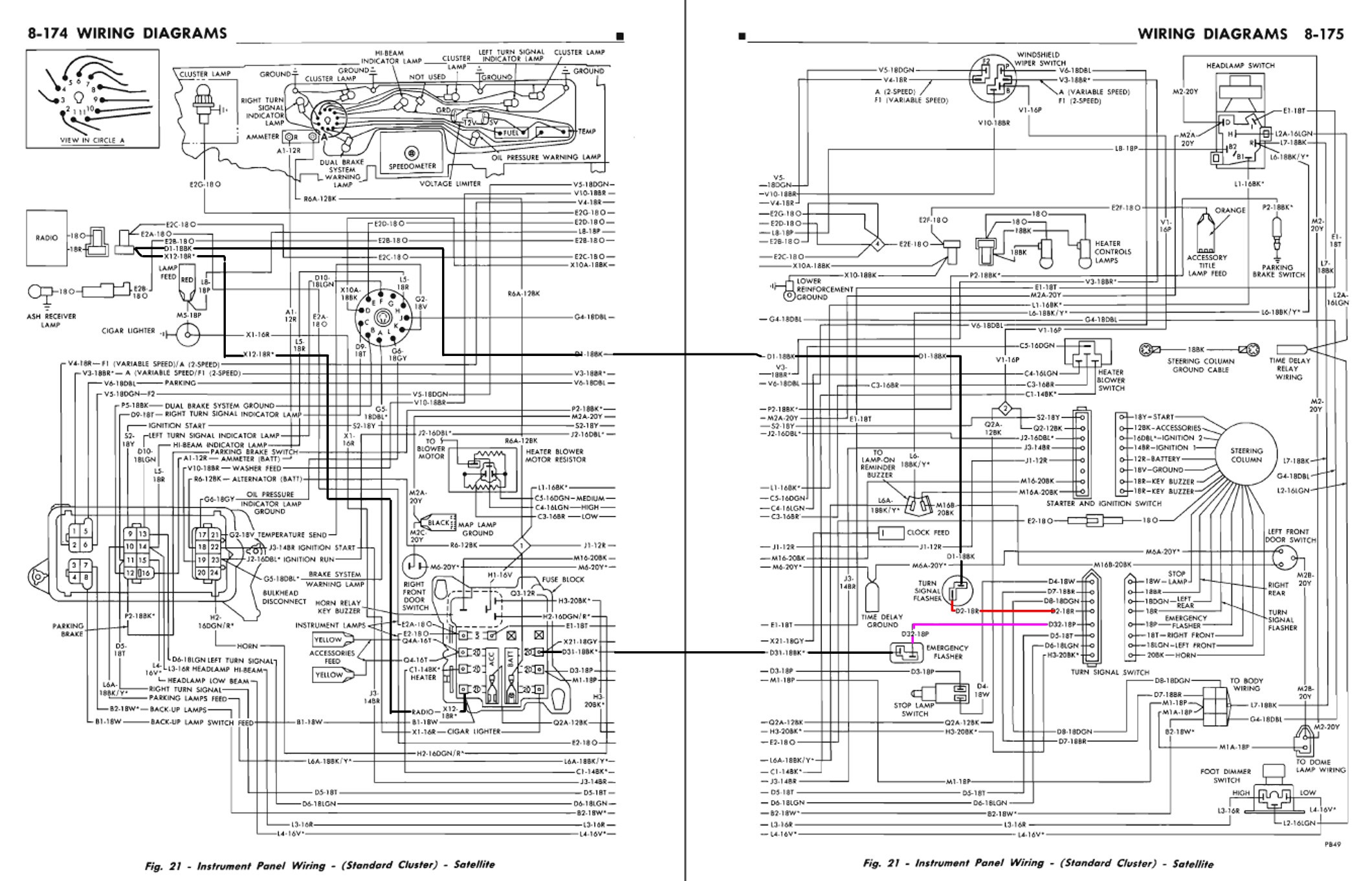 Laisse tomber, c'est bon j'ai les schémas (qui ne sont pas les tiens mais qui sont bien 1971 Satellite std cluster, y'a aussi le rallye cluster, tu as lequel ?)