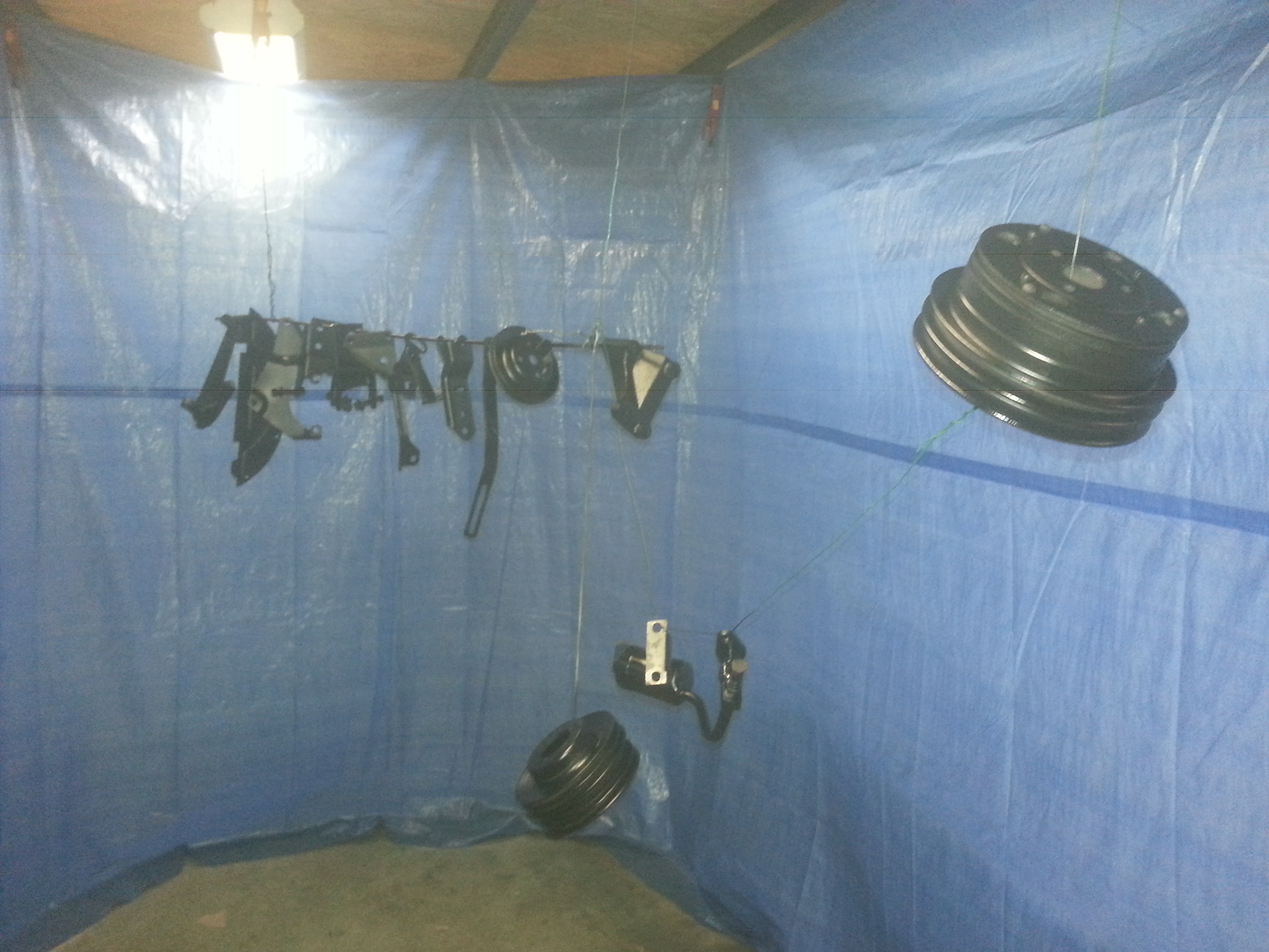 aujourd'hui, dégraissage, microbillage et peinture époxy de plein de bricoles...