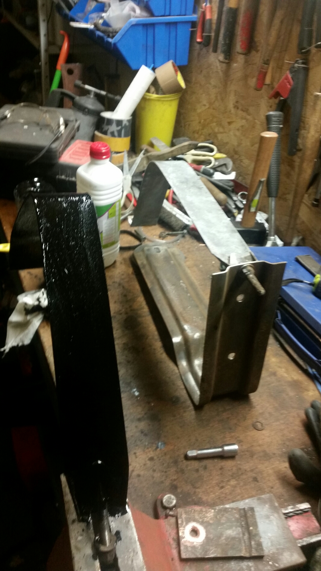 Mais bon je suis tt de même descendu récupérer les attaches de réservoir sur le châssis puis remontés dans le garage, brossage, peinturage et rentrage sur le canap pour apero :D