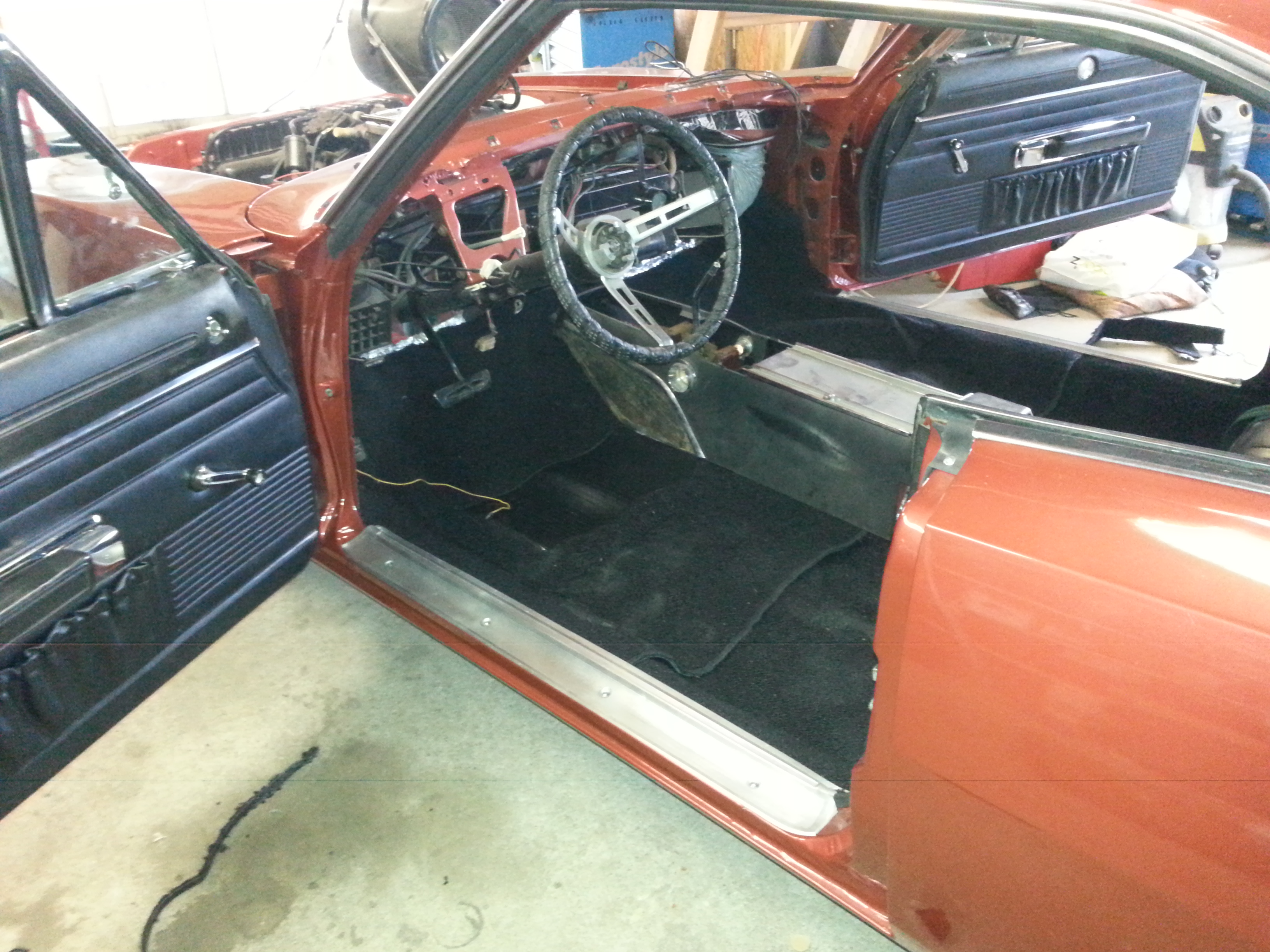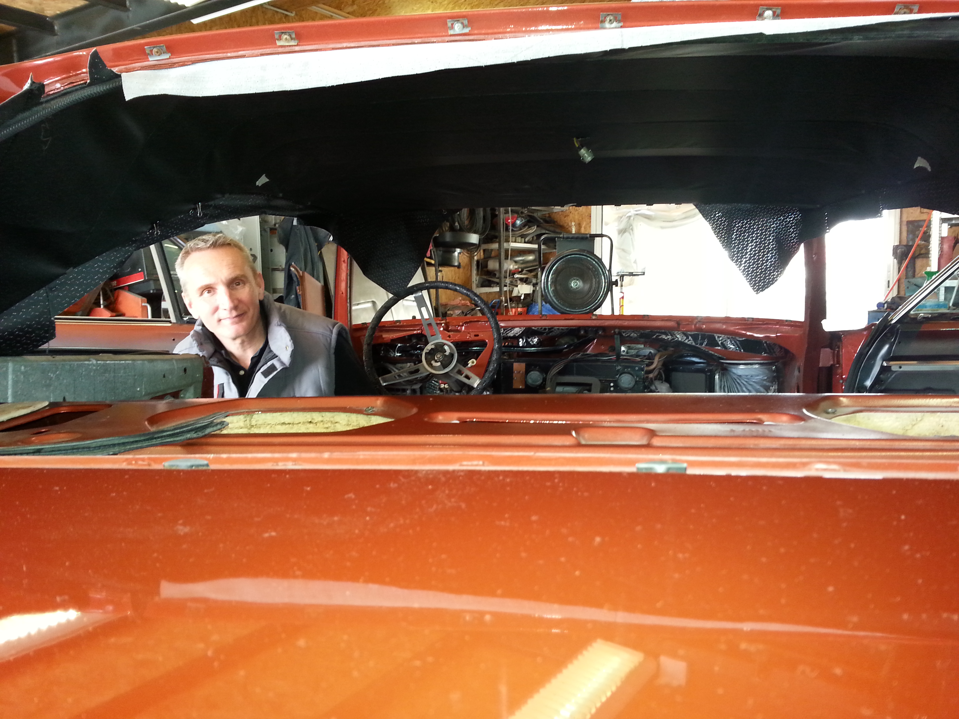 ça y est tu arrive au bout, je suis impressionné par la qualité/rapidité de la restauration ... il a pas l'air si mal le ciel de toit, j'me demande comment ça tien, c'est collé directement sur la tôle ?