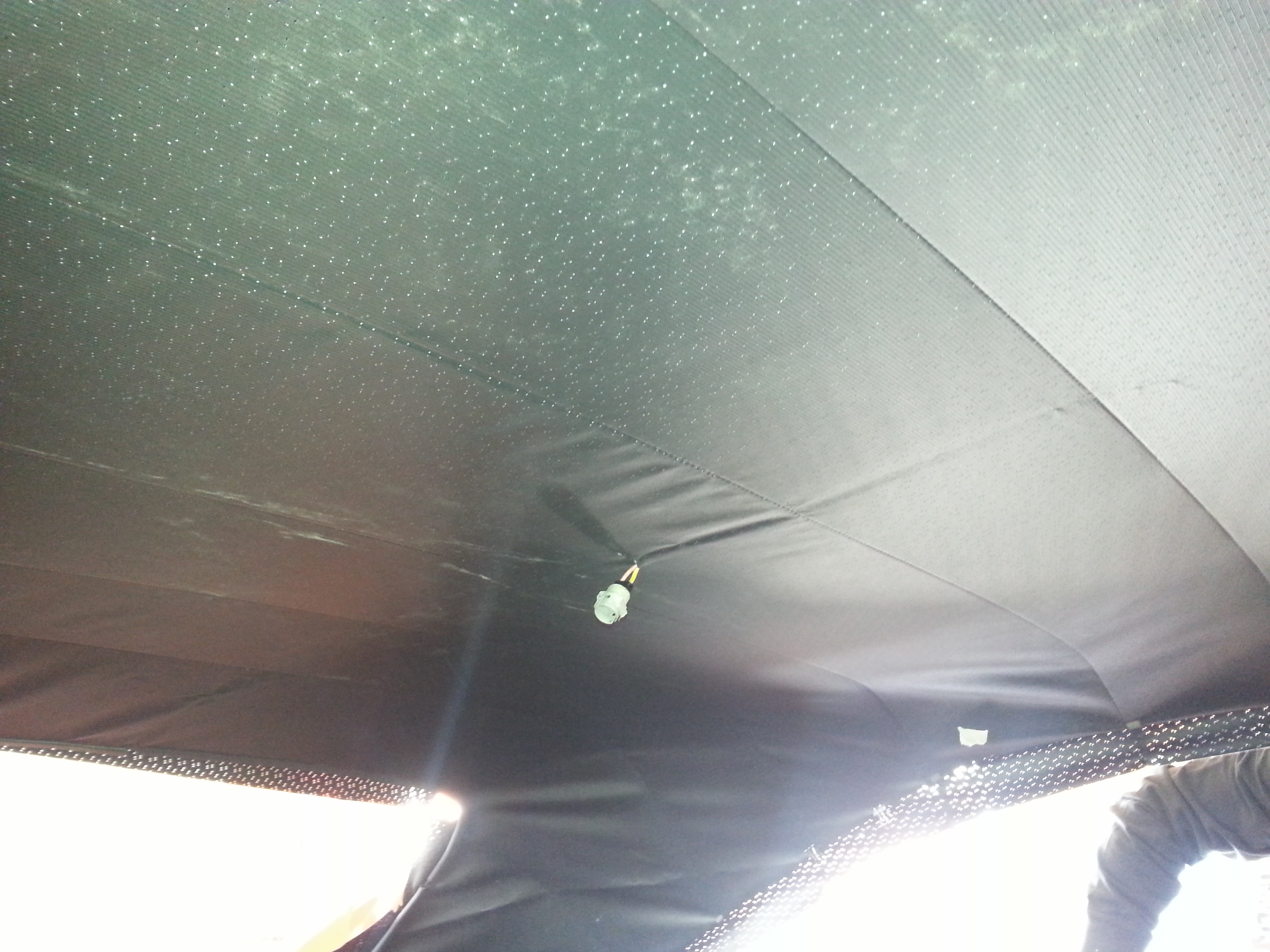 tu peut être content de ton boulot la pose du ciel de toit est une tache compliqué pour avoir un ensemble tendu parfaitement, perso je le trouve très bien