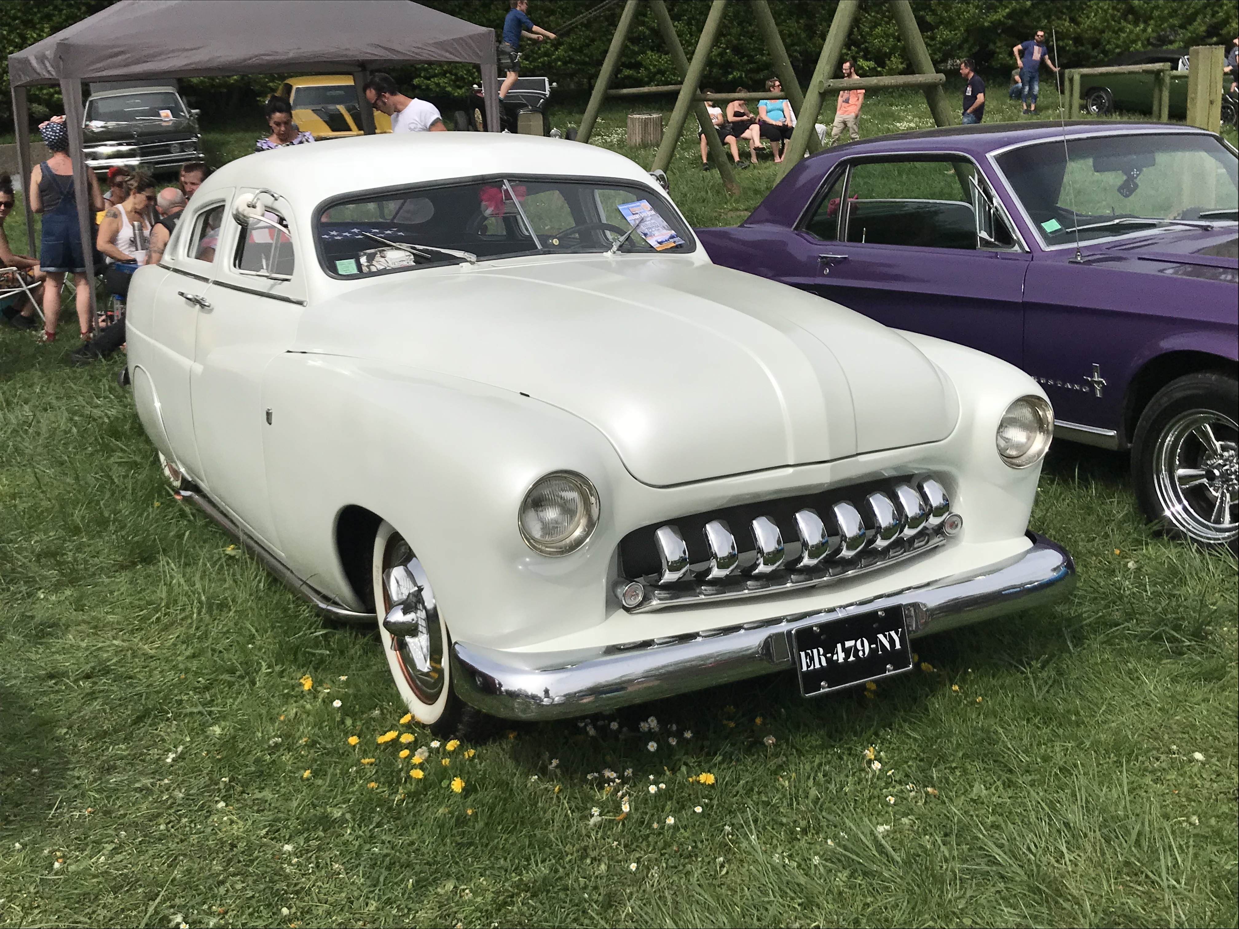 Pour ceux qui ne connaissent pas, c'est un site en herbe et arboré au bord d'un étang, donc très agréable par cette météo, on reçoit à chaque fois un très beau plateau majoritairement de classiques, kustoms, hot-rods et muscle-cars.