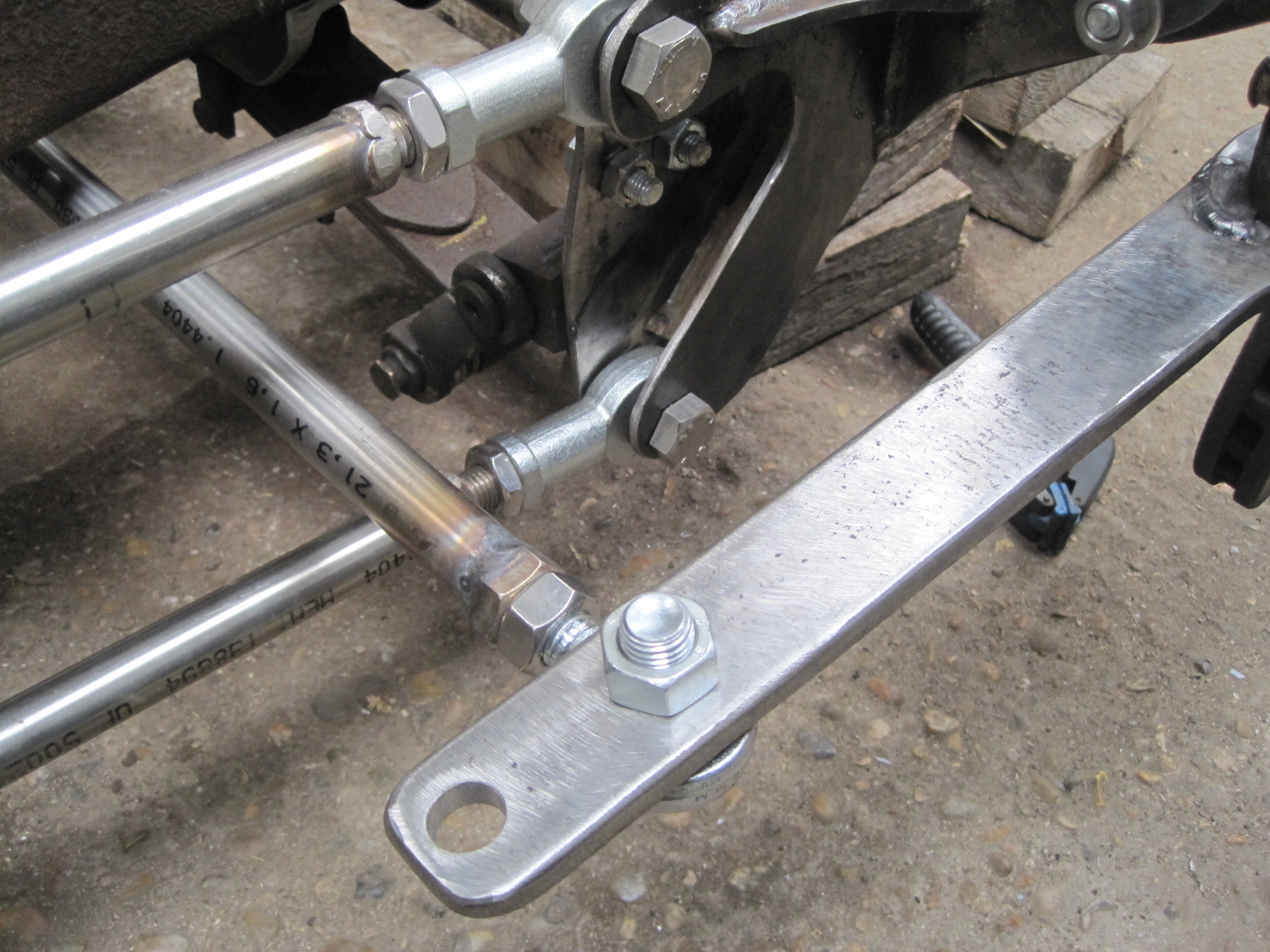 avec l'essieu décalé, les lames ne peuvent plus se fixer dessus d'où la conception d'une liaison entre l'essieu, les lames et les hairpins (tirants)....parce que là faut pas faire n'importe quoi !!!