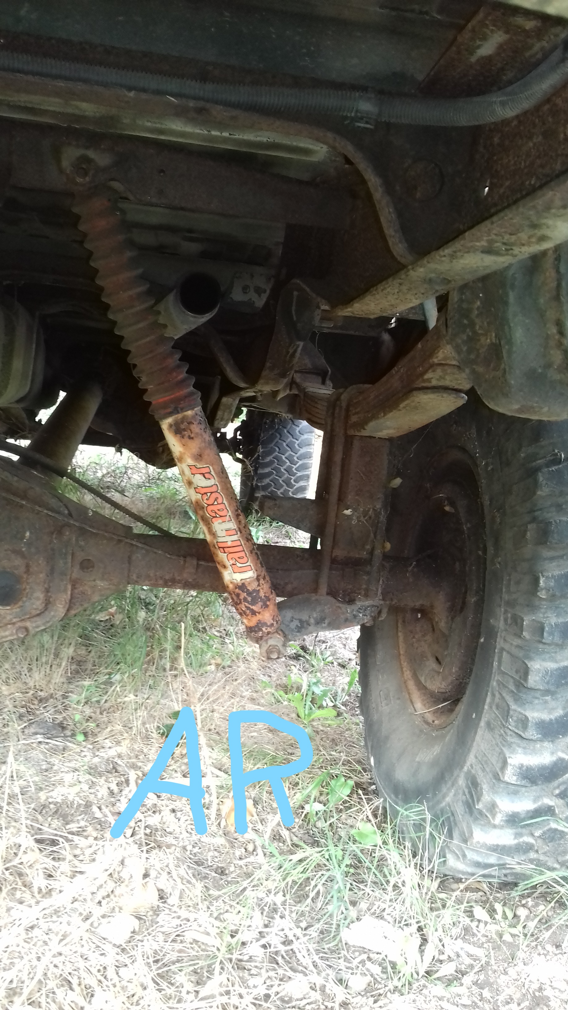 si ça été bien fait, c'est les lames sinon cales… Je dirais (sans avoir vu la réhausse) à l'avant le paquets de lames + amortisseurs et à l'arrière soit juste une