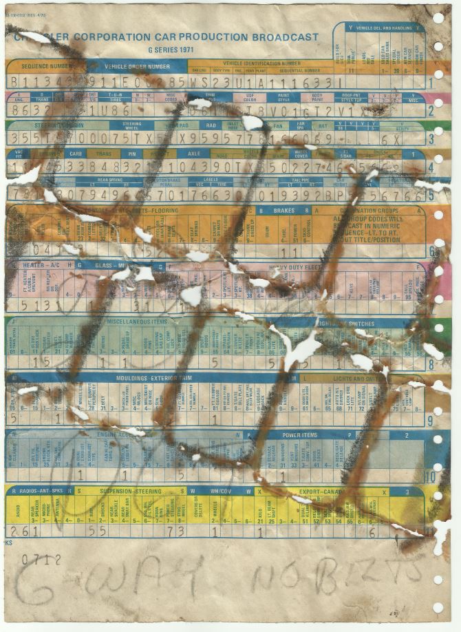 216971: N° de série. C'est la 116971 Charger 1968 puisque le N° de série commence à 100001. C'est bizarre car d'habitude on annonce un peu moins de 100000 Charger produites en 1968?!