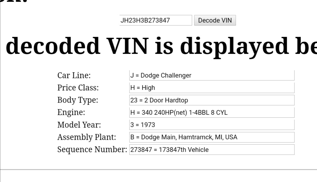 Le 3 c est l année de production, et le B l'usine de production donc 3 c est pour 73. Mais les frappes sur le support de radia et le cowl vent sont inversées par rapport au Vin complet.