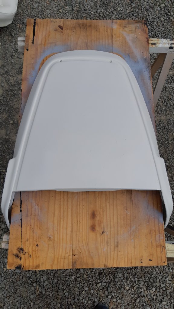 Pour commencer, finition des sièges avant: lavage et ponçage des coques des dossiers et mise en apprêt, puis peinture