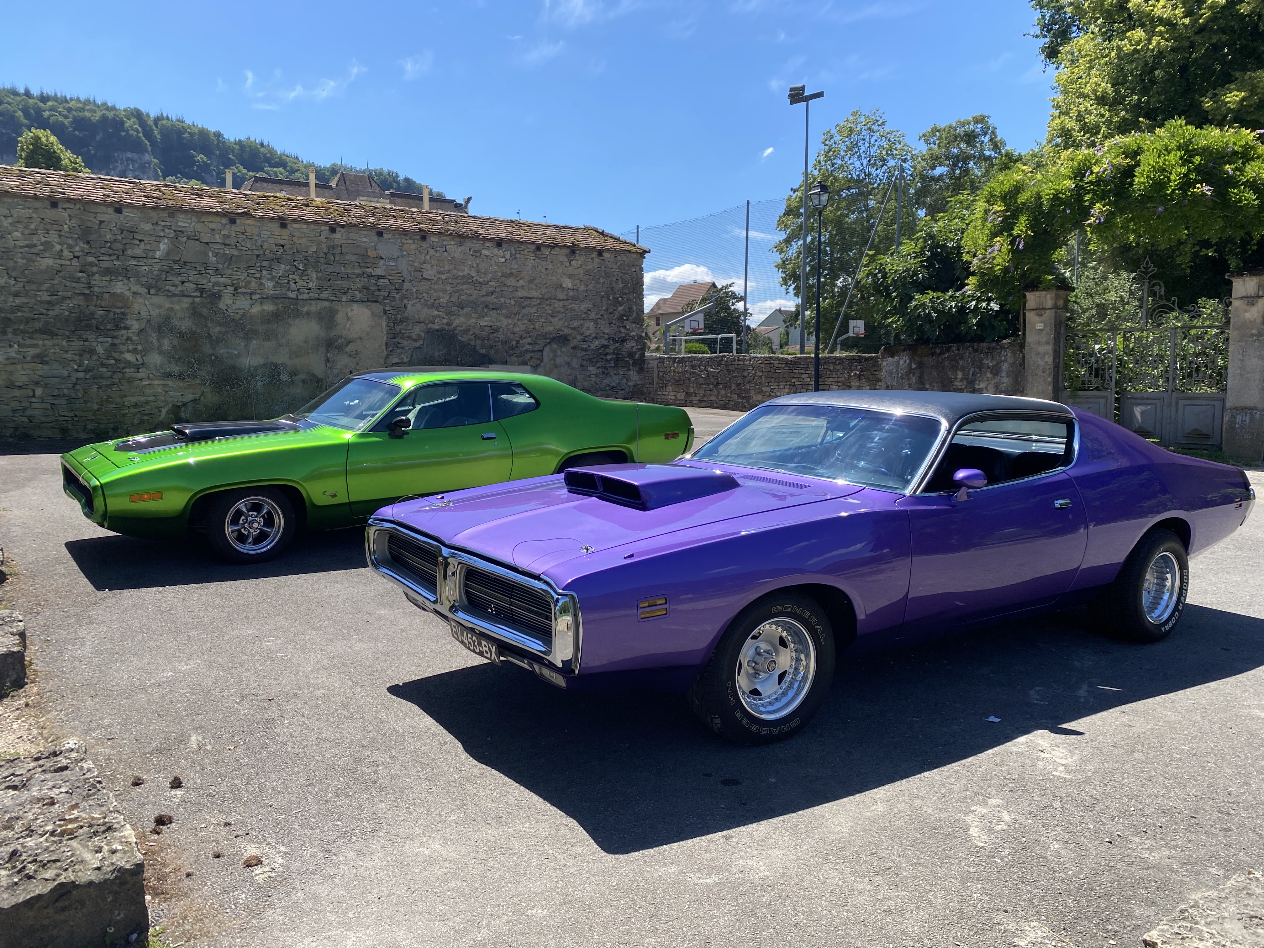 Rdv a crémieu a 14h et ensuite on go direction pérouges , 2 mopar allignées dodge charger et une plymouth satelite. D’autres volontaires ????