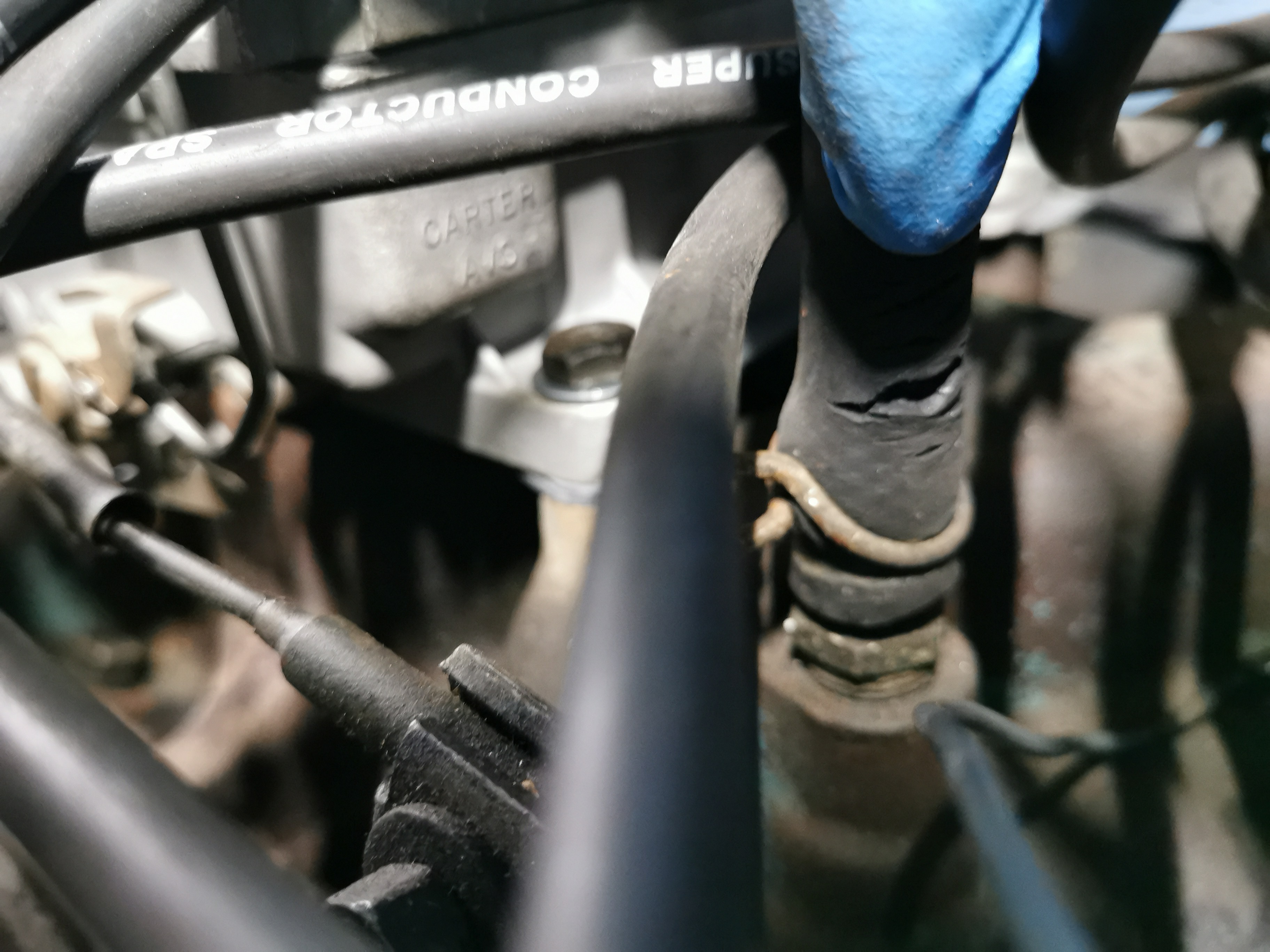 Sur la photo, je le pointe avec un tournevis. Néanmoins avec l'ancien carbu, elle ne démarre plus. Enfin, si, par 2 fois elle a tourné 5 secondes et s'arrête. Impossible de redémarrer. J'ai fait le test avec un peu d'essence direct dans le carbu, rien.