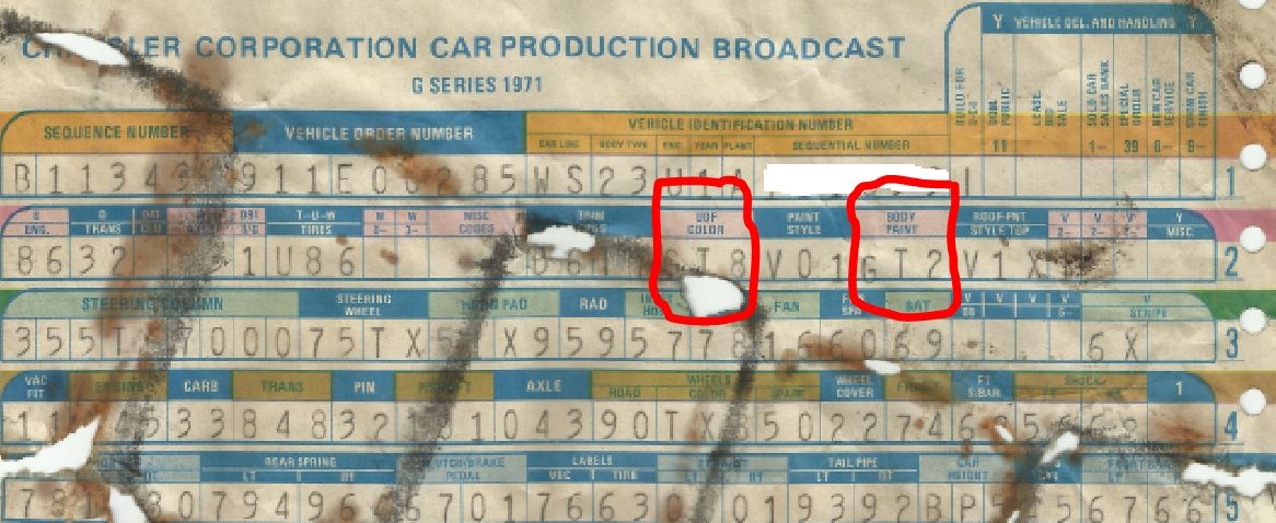 Sur ma broadcast sheet, il est indiqué que la couleur intérieure des cadres de vitres (upper door frame) était en Dark tan metallic (GT8).