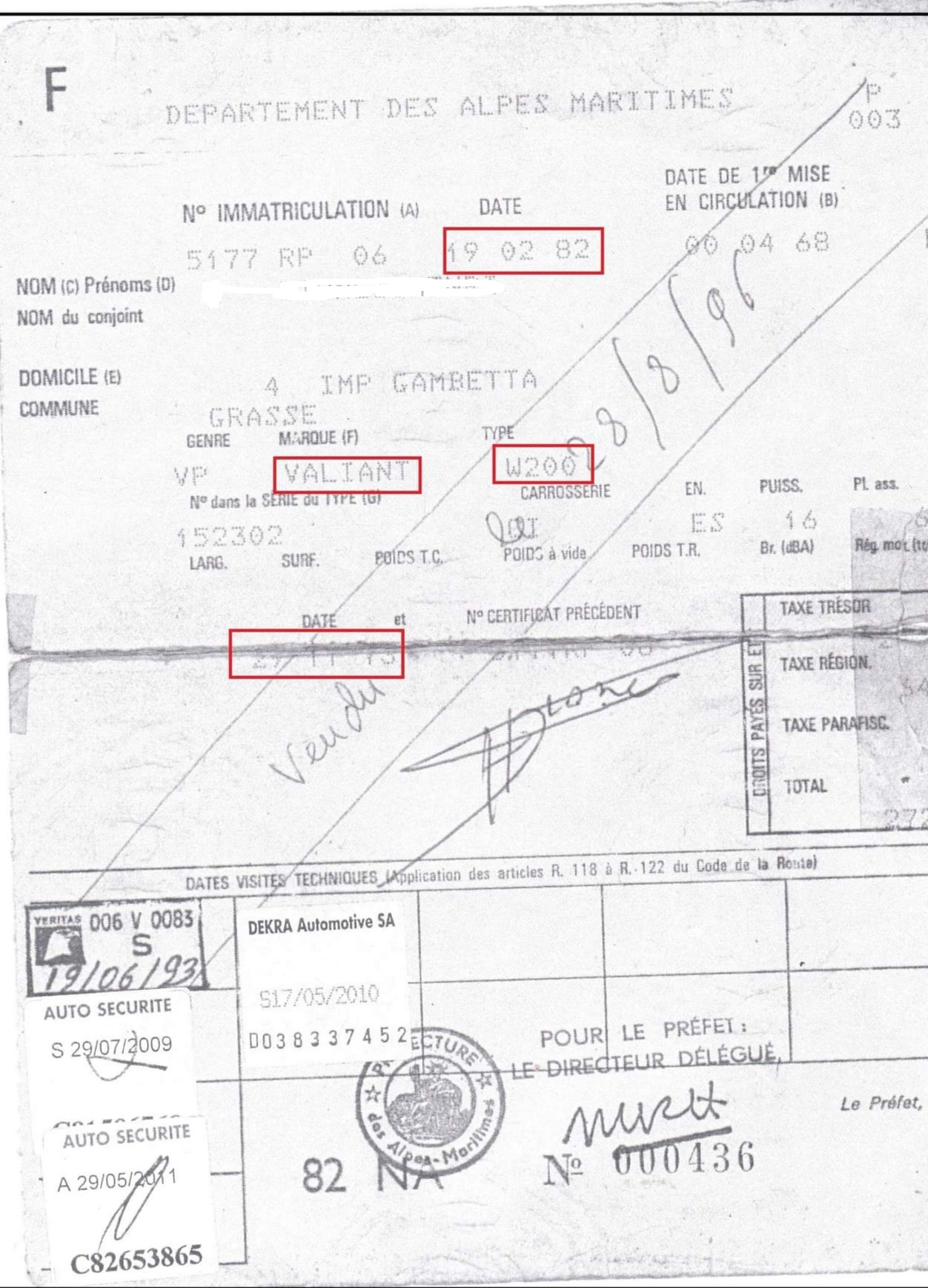 La personne ayant fait établir la première carte grise a pris la dénomination Valiant à la place de Plymouth.