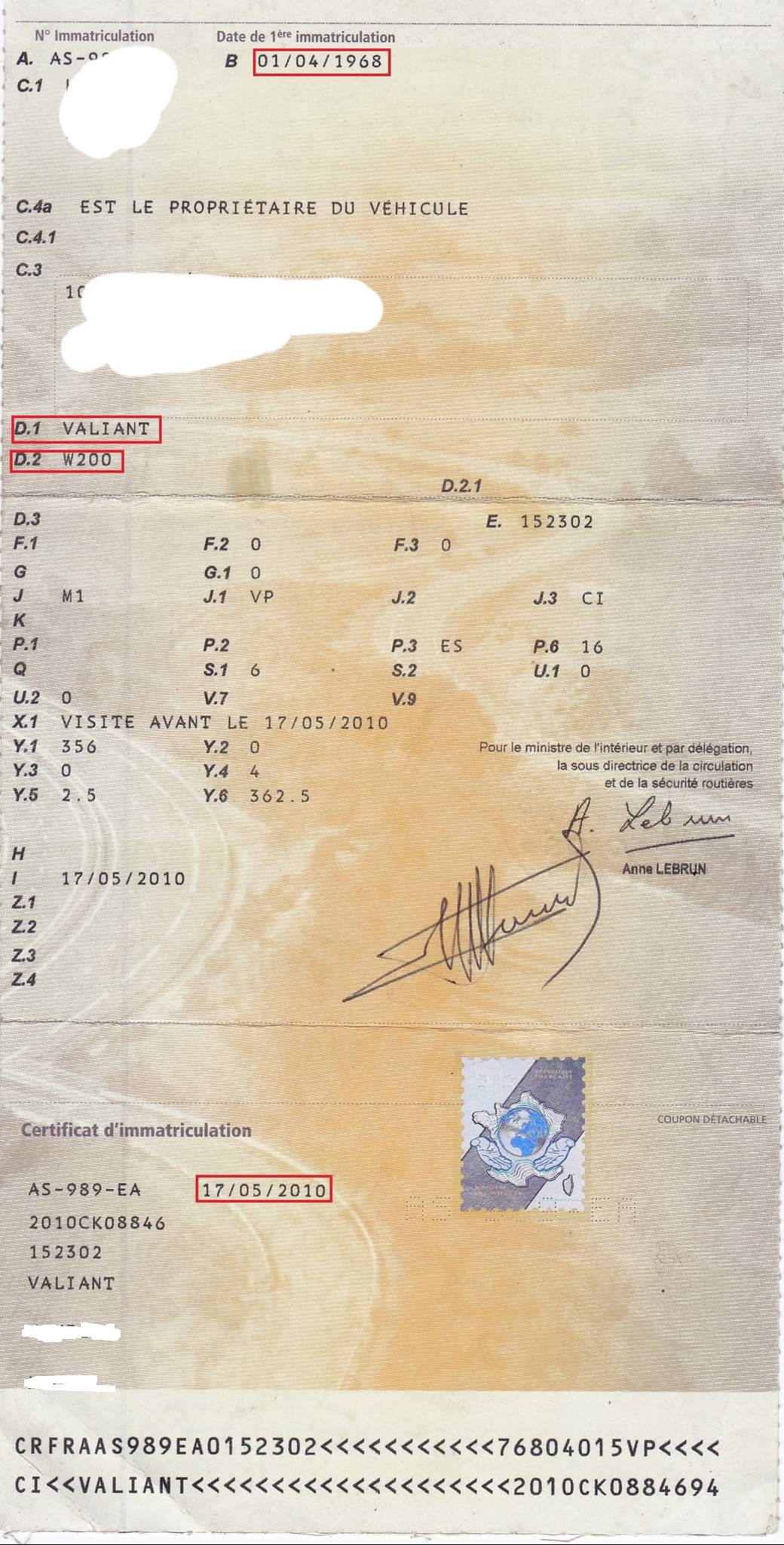 Les erreurs à l'époque où rien n'était informatisé étaient fréquentes : mon ex-Barracuda 1970 avait aussi une erreur dans le n° de série (sur la CG et sur la plaque Simca France).