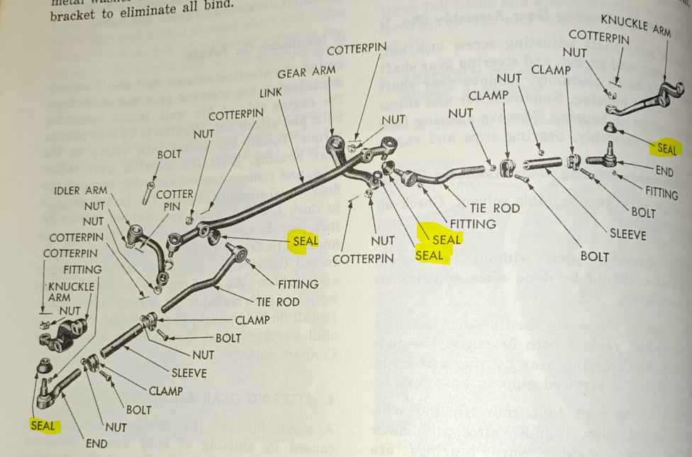 J'ai bien trouvé séparément le bushing pour l'idler arm et les seals pour les tie rod end mais j'aurai aimé trouvé l'ensemble nécessaire pour la réfection de toute la barre d'accouplement. Ils ont bien un kit complet chez Moparmall mais à $ 1688 départ USA, ça pique!! Je suis preneur pour un bon plan pas trop cher!