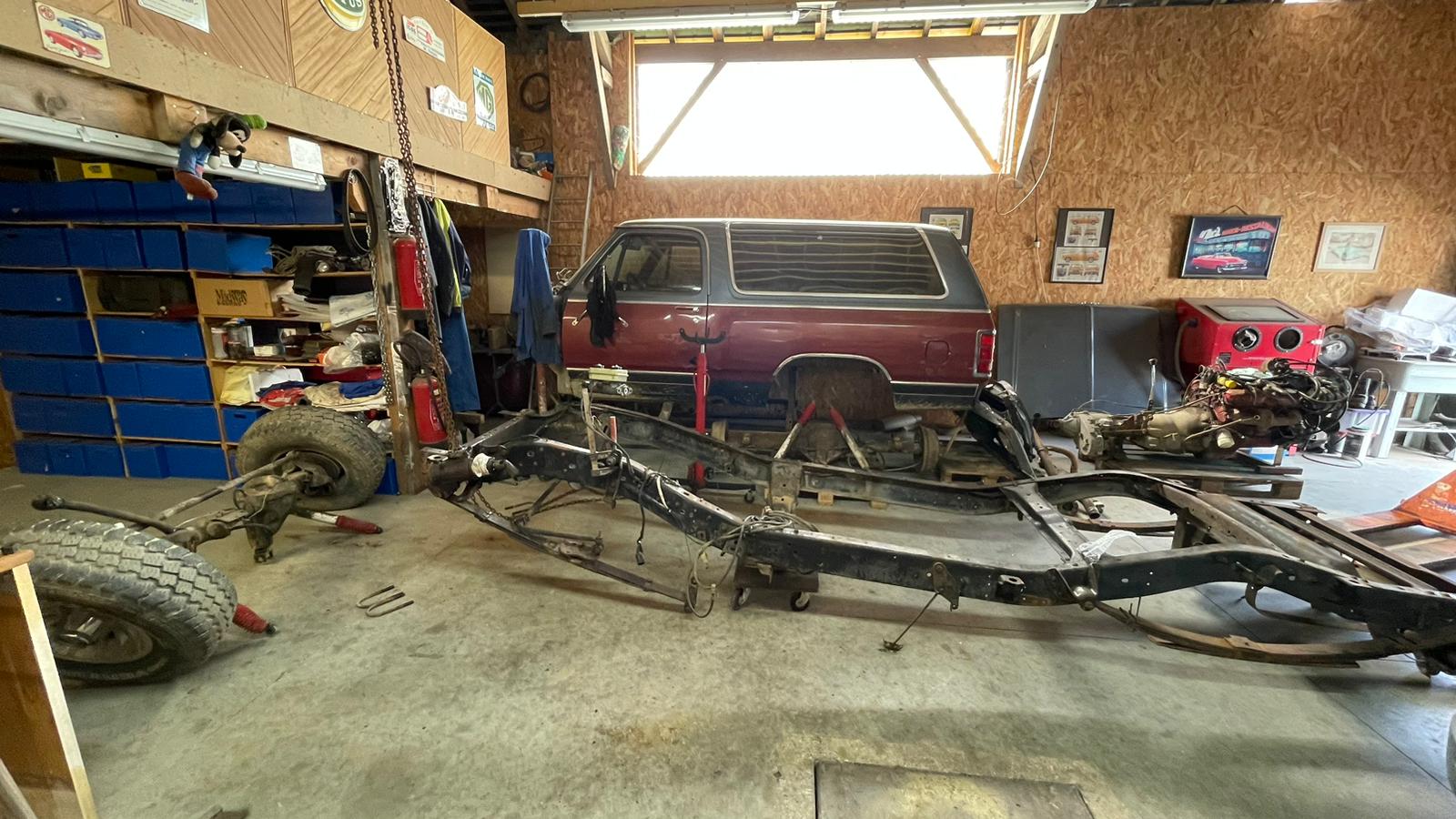 Le Ramcharger commence à bien être en pièces détachées, on s'occupe en premier du chassis, mis à nu, qui va partir en sablage/peinture