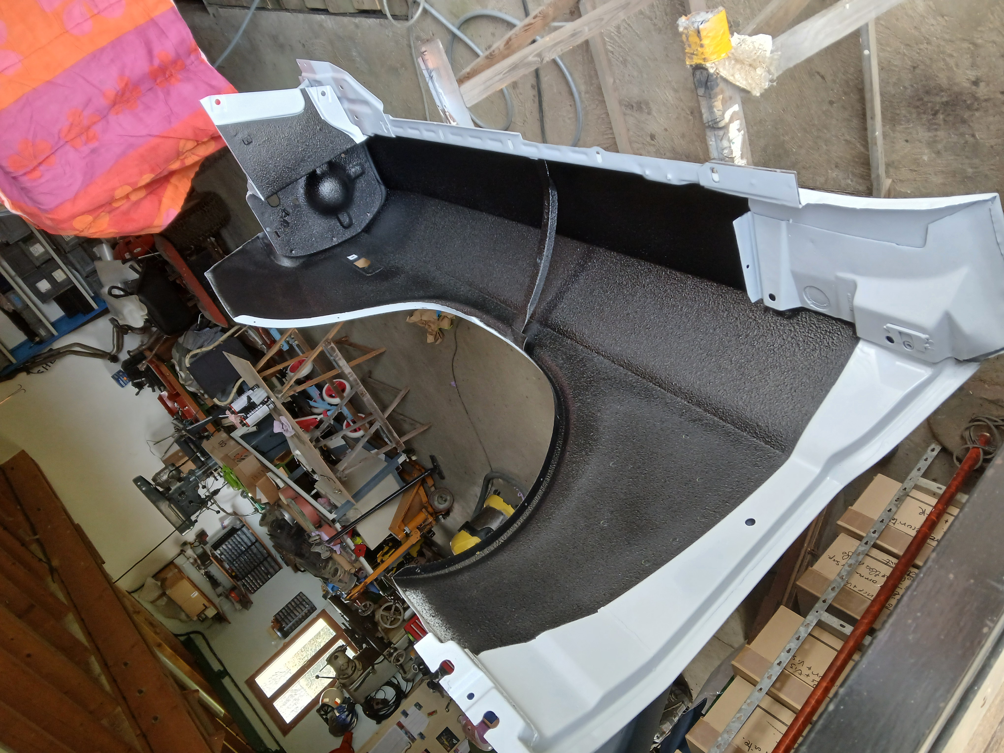 Application de l'anti gravillon à l'intérieur des ailes.