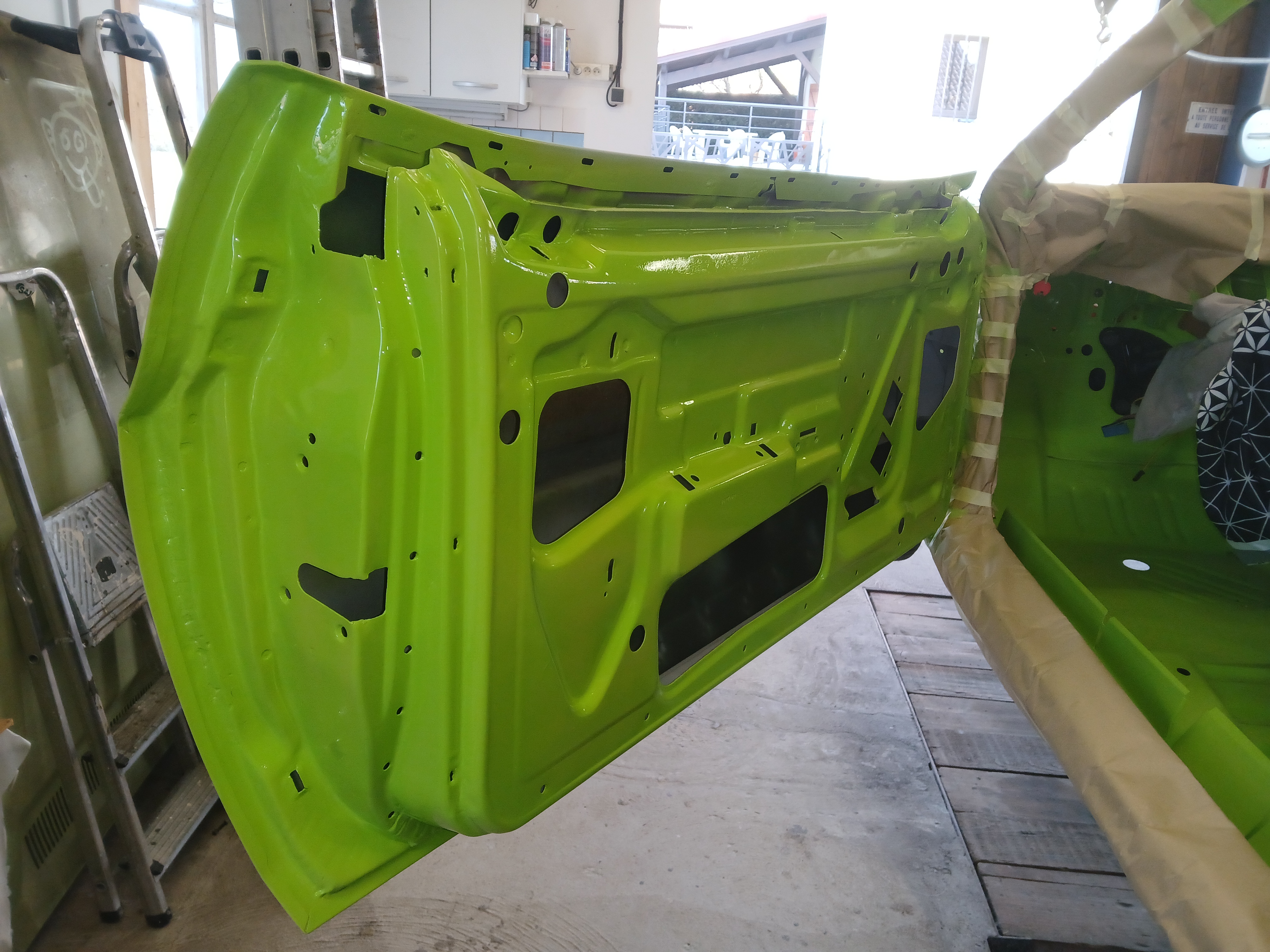 Pendant que j'étais dans la peinture , j'ai mis une couche a l'intérieur des portières histoire de faire propre!