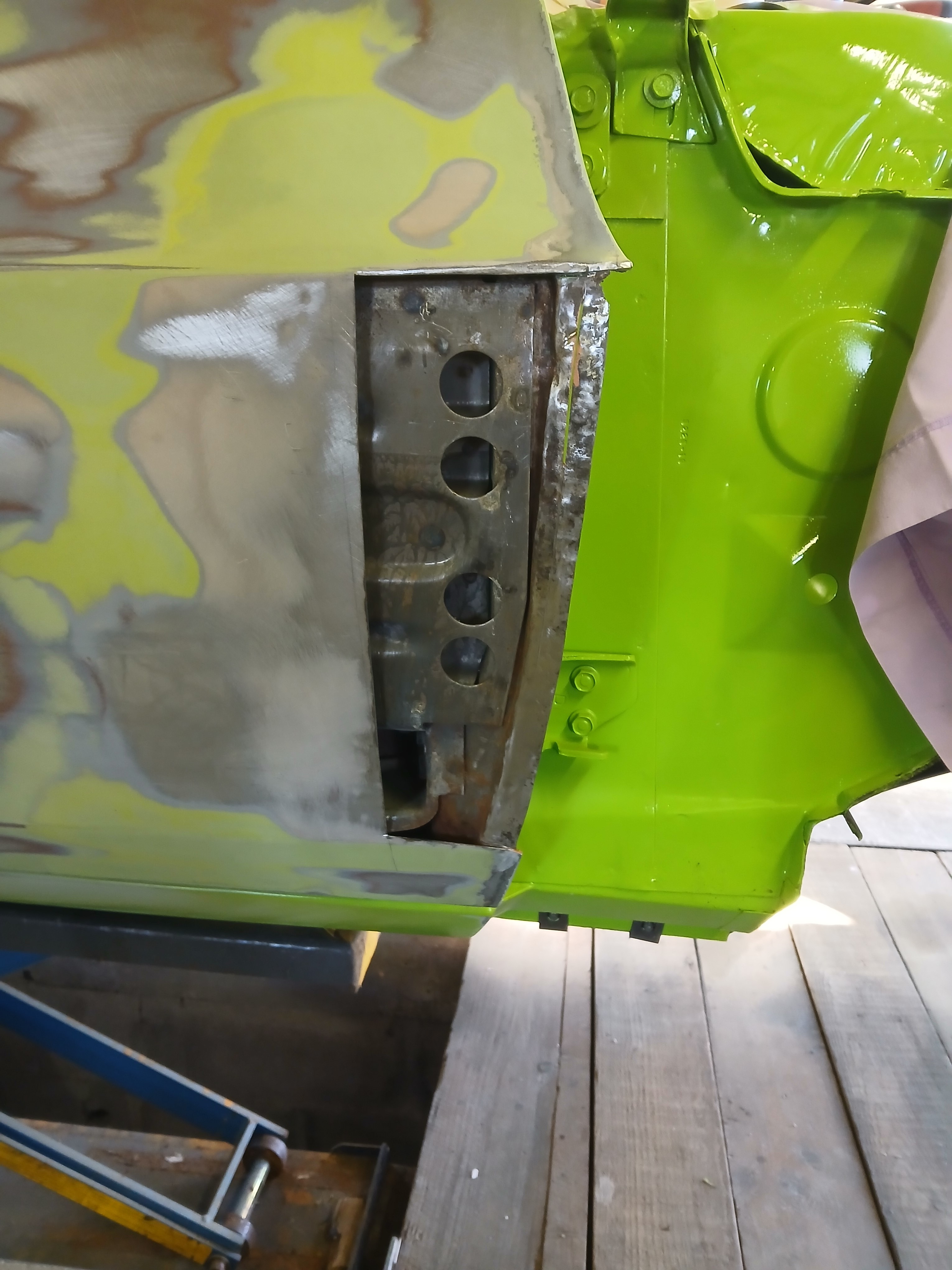 non , ça va , les renforts empèche de taper les soudures , j'ai fait où je pouvais , le retreint de la tôle fait que l'ensemble est un peu en retrait mais un peu de mastic alu devrait suffire... j'espère :D