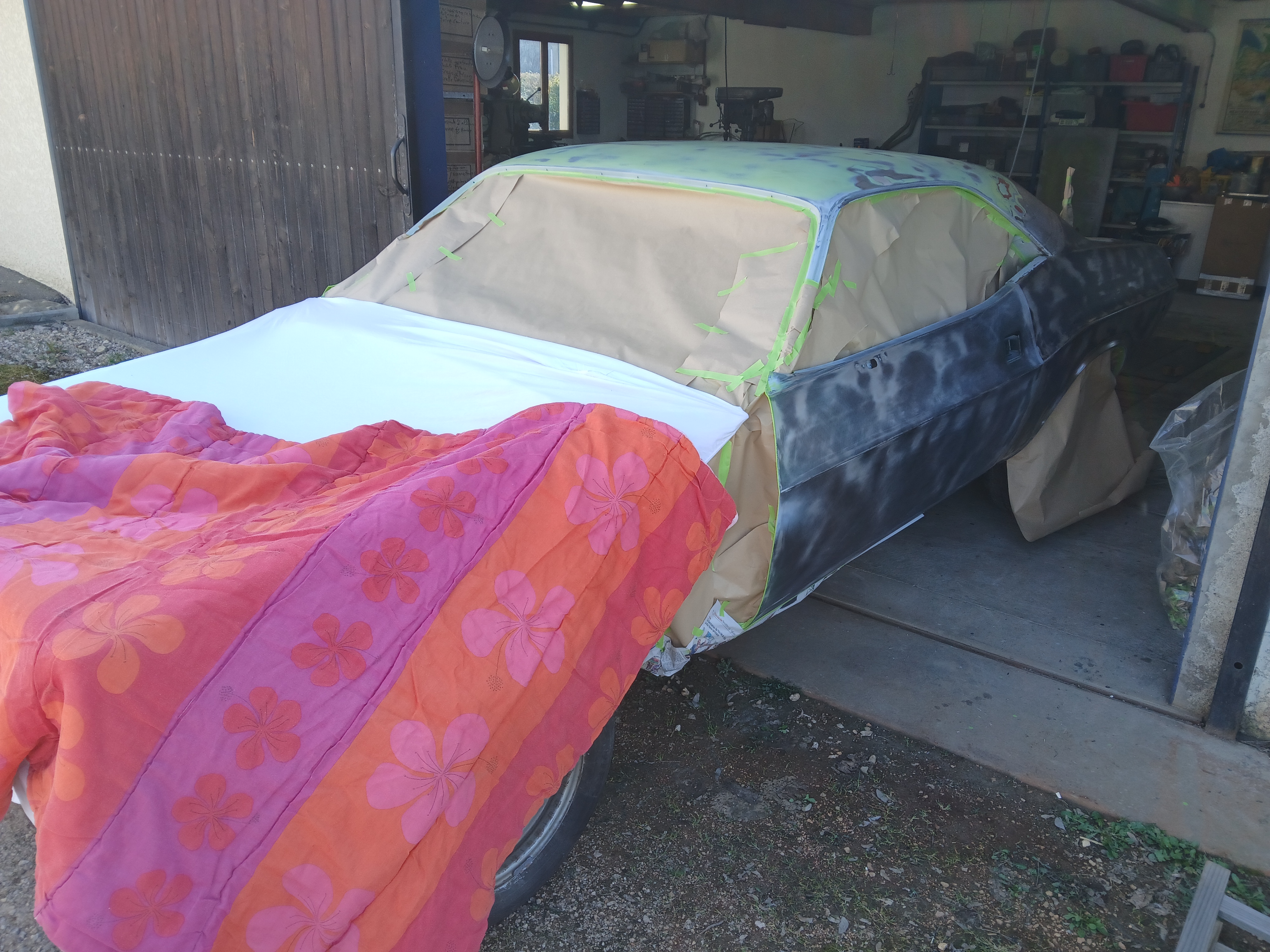 Ceçi fait , préparation et dépose d'une première couche d'aprêt , un époxy anti-rouille...