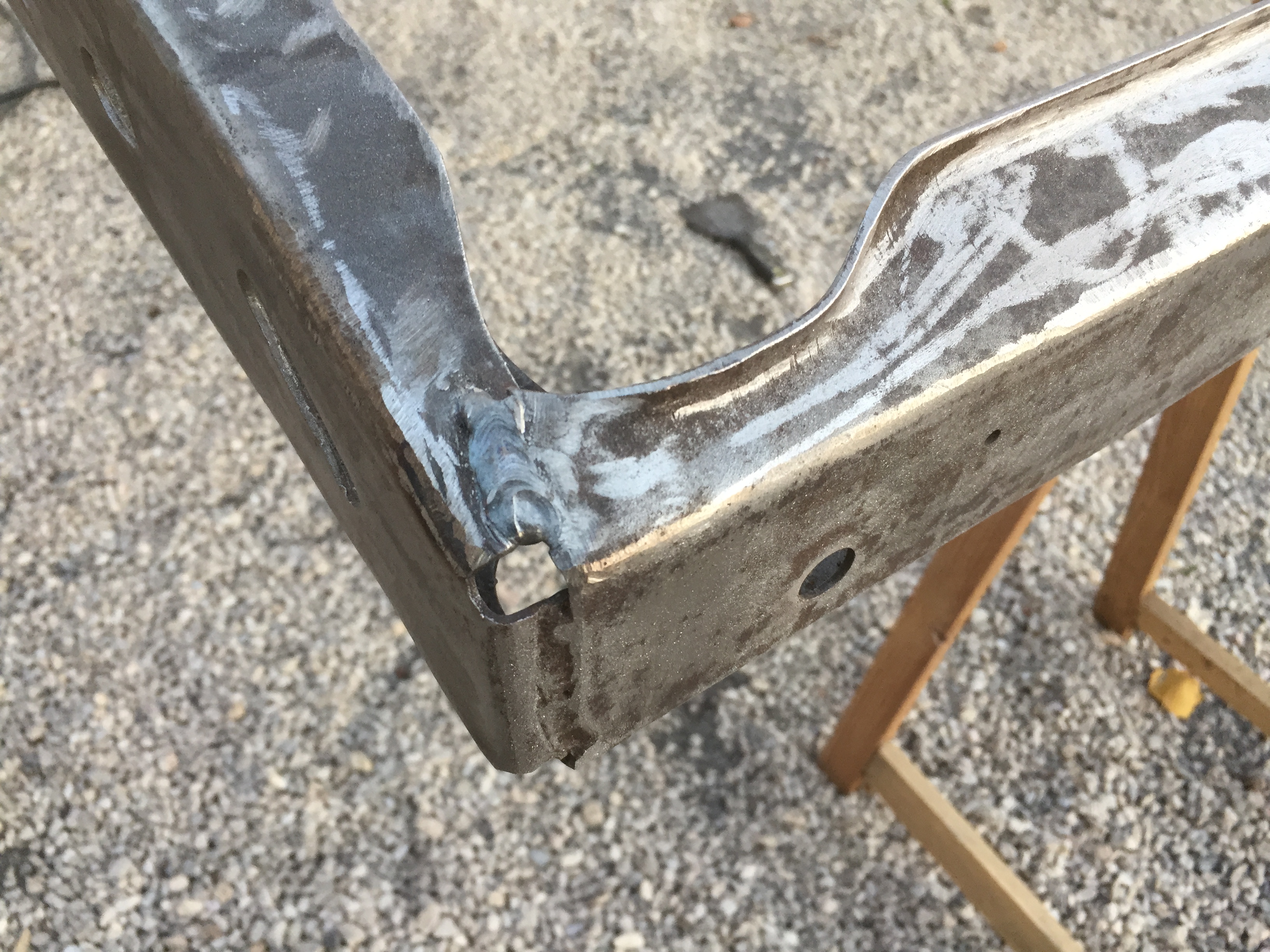 reprise d'une petite soudure sur le bout du châssis qui avait pété