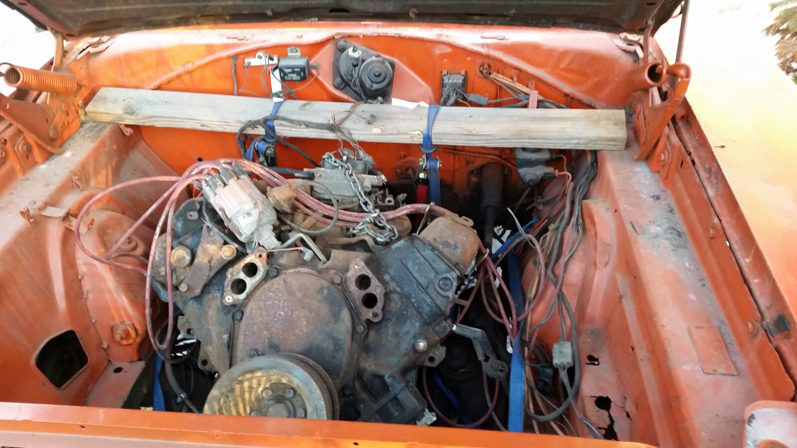 Comme vous pouvez le constater, malheureusement le moteur n'est pas complet, si vous pouvez me dire les pièces manquantes, ça m'aiderait beaucoup car je ne m'y connais pas beaucoup en moteur V8 (mais plus en moteurs européens).. Oui, le moteur a été posé à l'arrache par le vendeur pour le transport