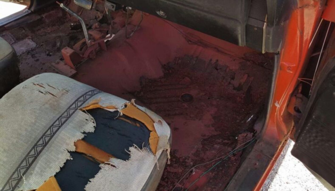 Les 2 planchers sont à changer, le coffre aussi est attaqué mais très peu... je n'ai pas de banquette arrière ni de console centrale, ni de moquette intérieure, ni d'échappement...