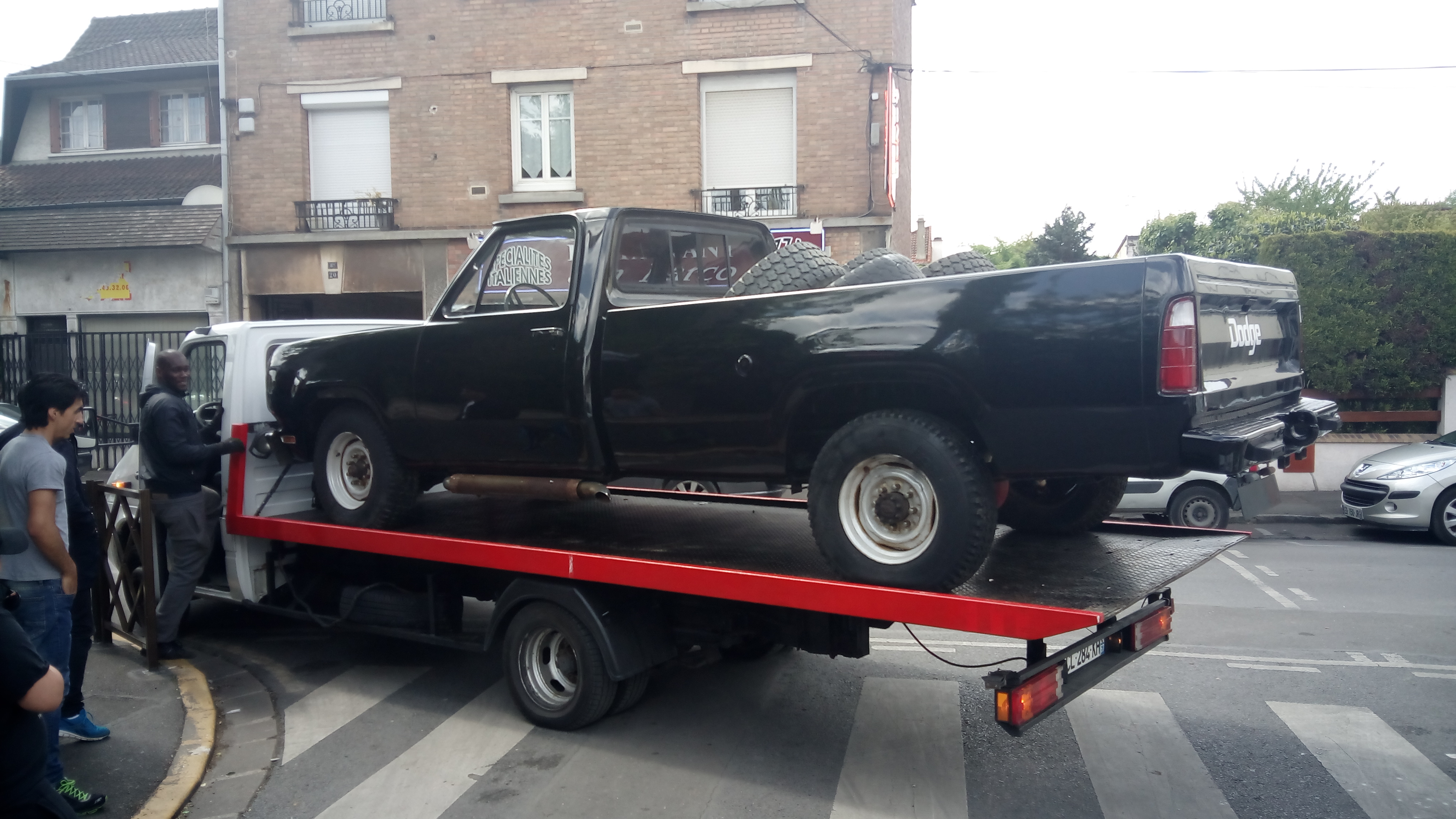 Tiens il est connu celui la avec son toit " bizarre" En fait c'est une ex ambulance . on lui a viré sa caisse et remplacé par une benne ......