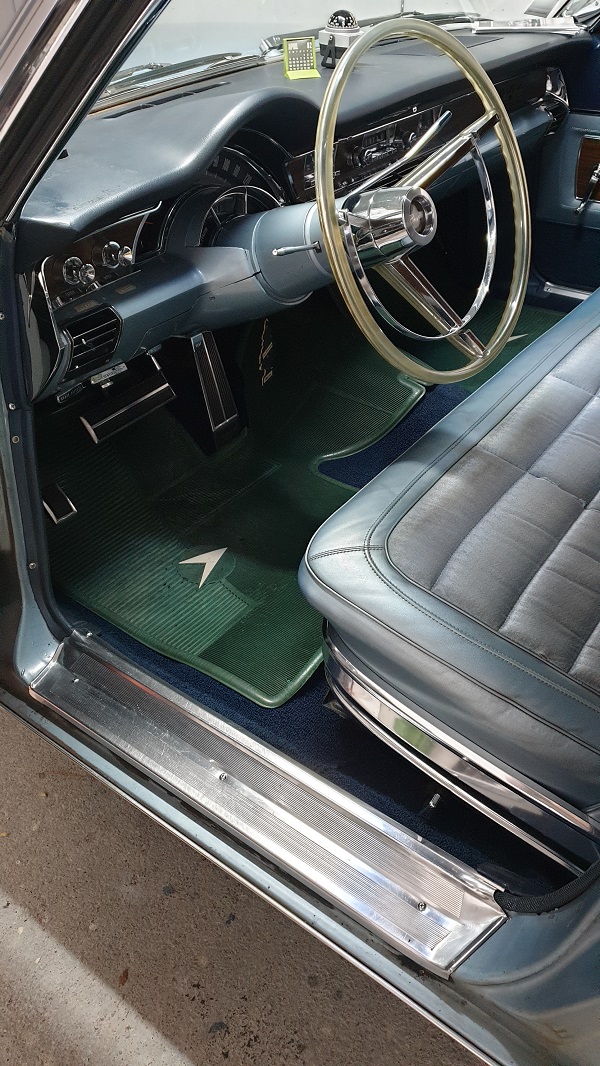 Aujourd'hui, enfin hier... remontage de la partie basse du tableau de bord après avoir passé une durite de dépression pour un accessoire que j'ai reçu (ouverture du coffre à distance). Du coup, comme il faut aussi démonter tous les seuils du côté gauche, petit coup de lustrage à l'huile de coude. Résultat : va falloir que je fasse pareil à droite car désormais ils sont moches par rapport à ceux du côté gauche, et la crasse que l'on voit sur le bord inférieur, et bien il va falloir l'enlever aussi car ça fait "tache" maintenant. Autre idée qui me trotte dans la tête, reteinter les tapis en caoutchouc, car ils étaient turquoise à l'origine (la partie cachée n'a pas tourné au vert...). Et aussi trouver un sellier pour remplacer le tissu et les mousses de la banquette avant.