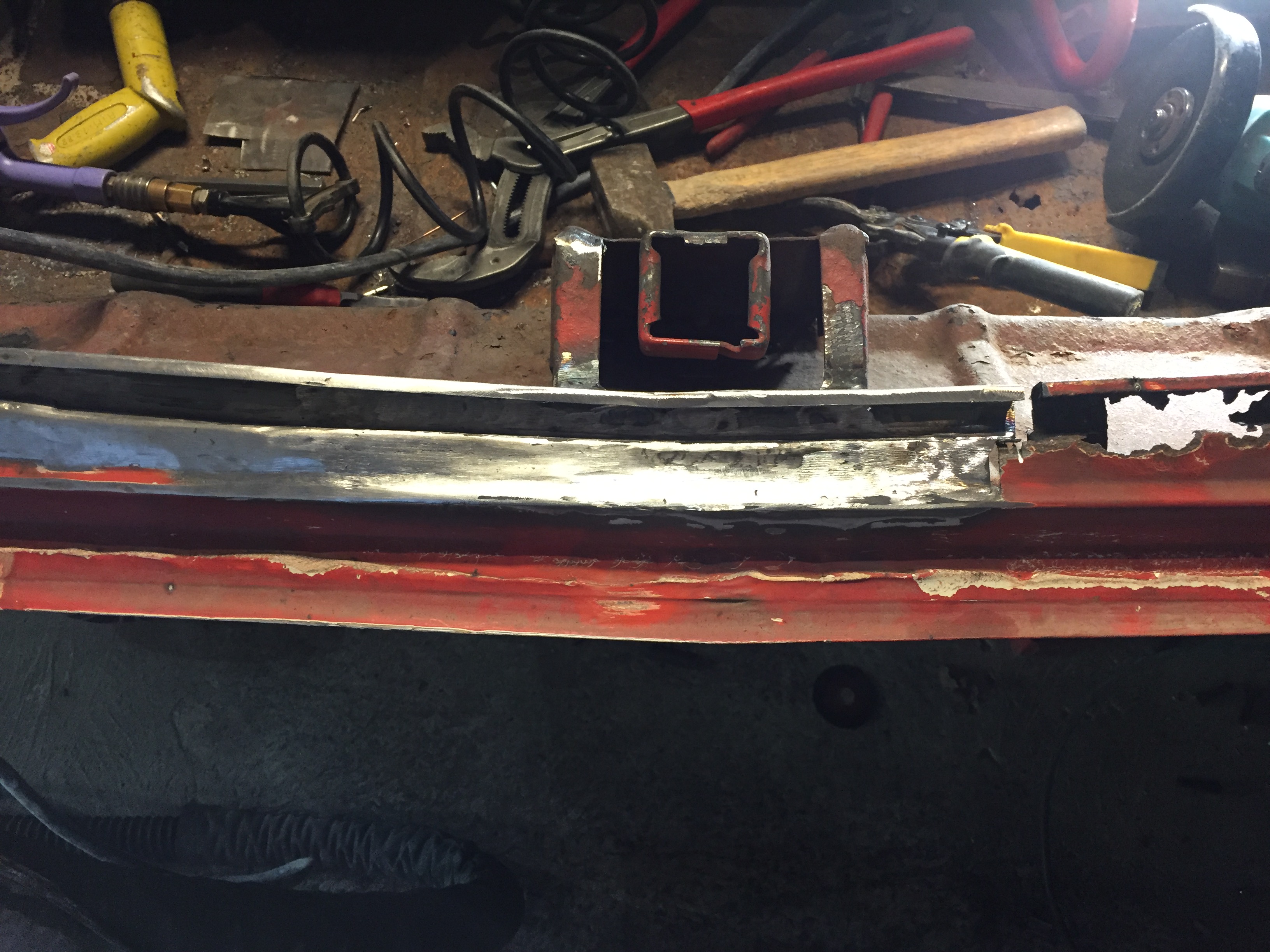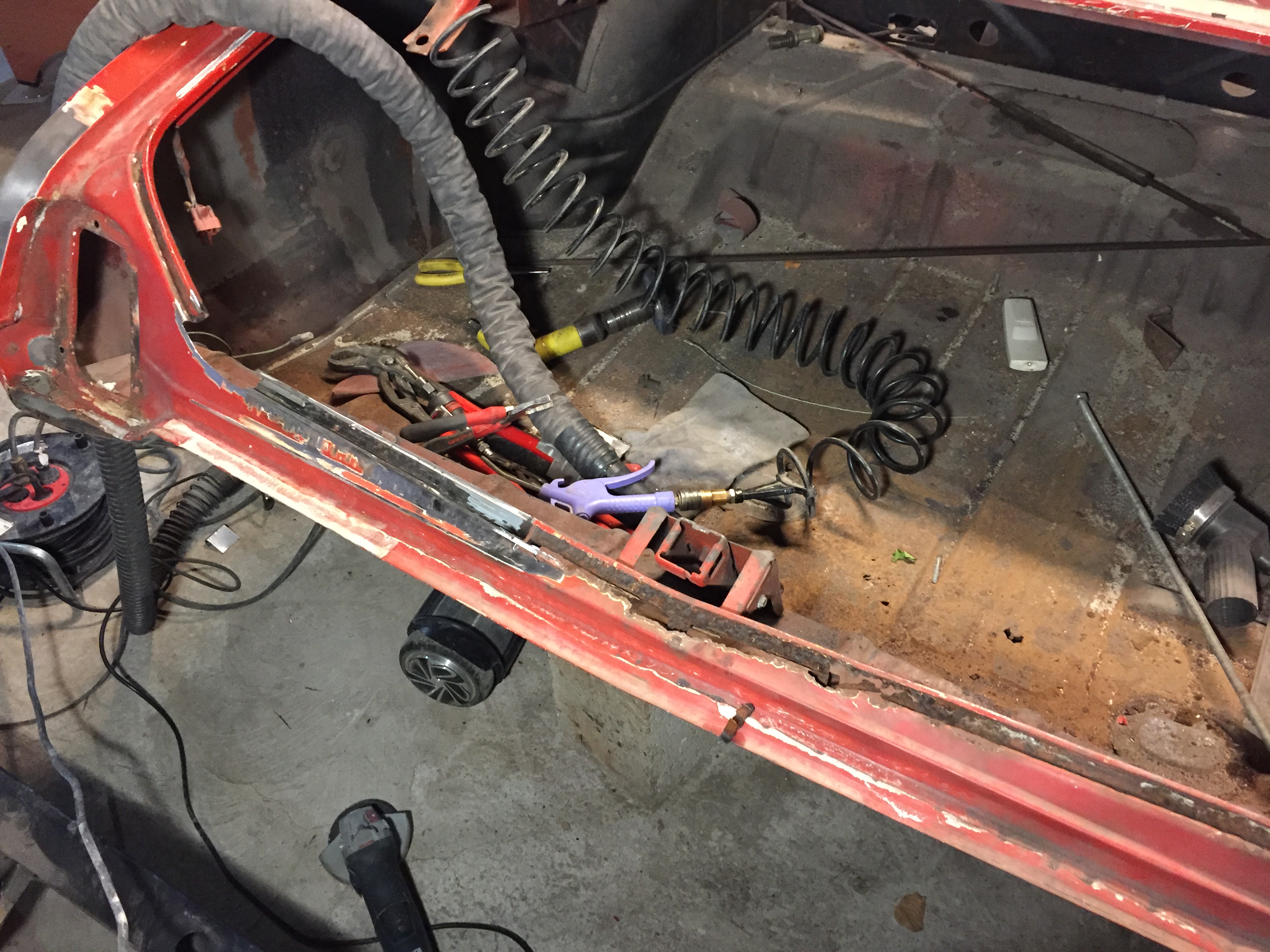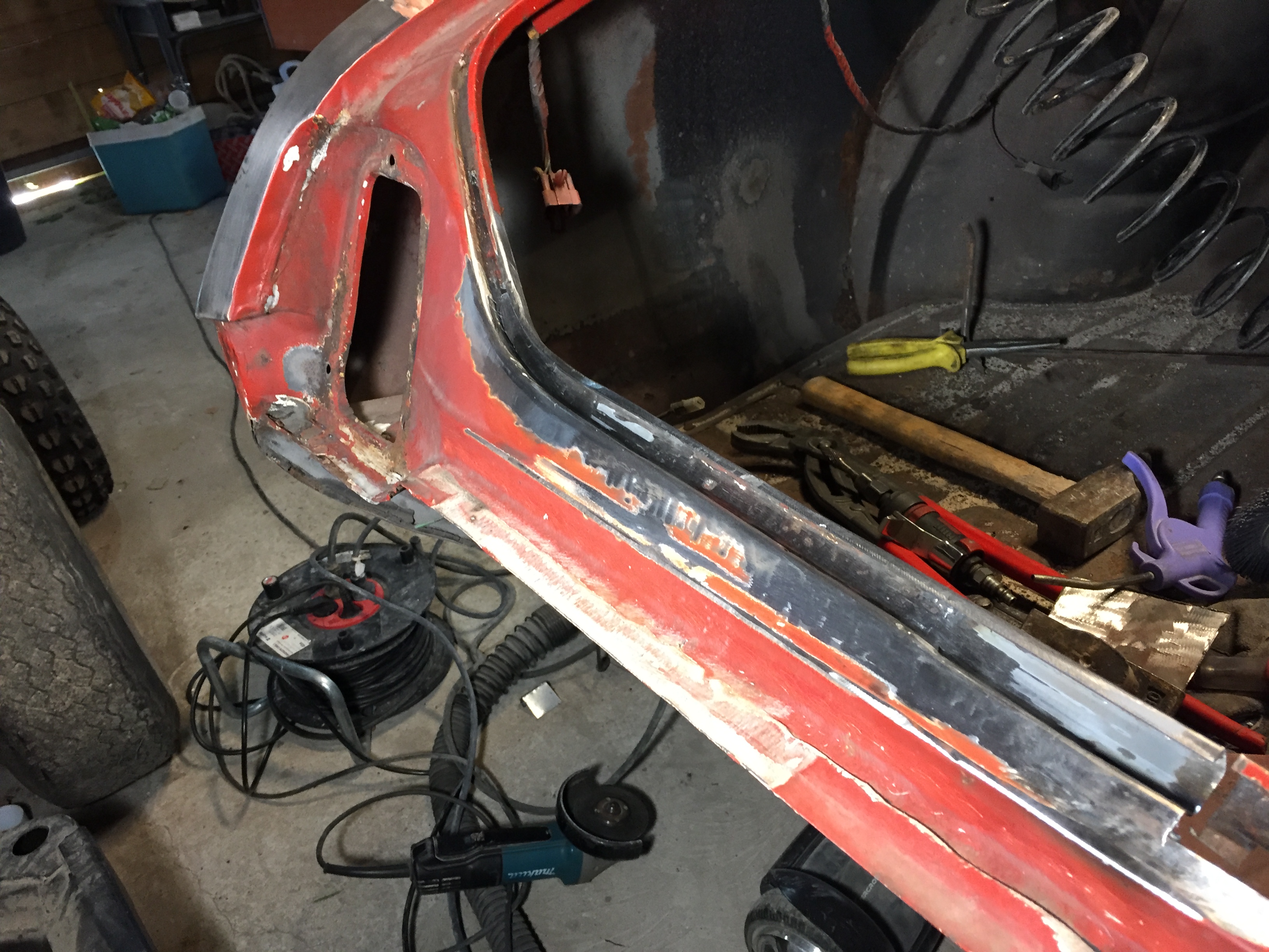 pour l'instant je fais décaper toute la caisse recto verso quelques petites surprises en bas des ailes