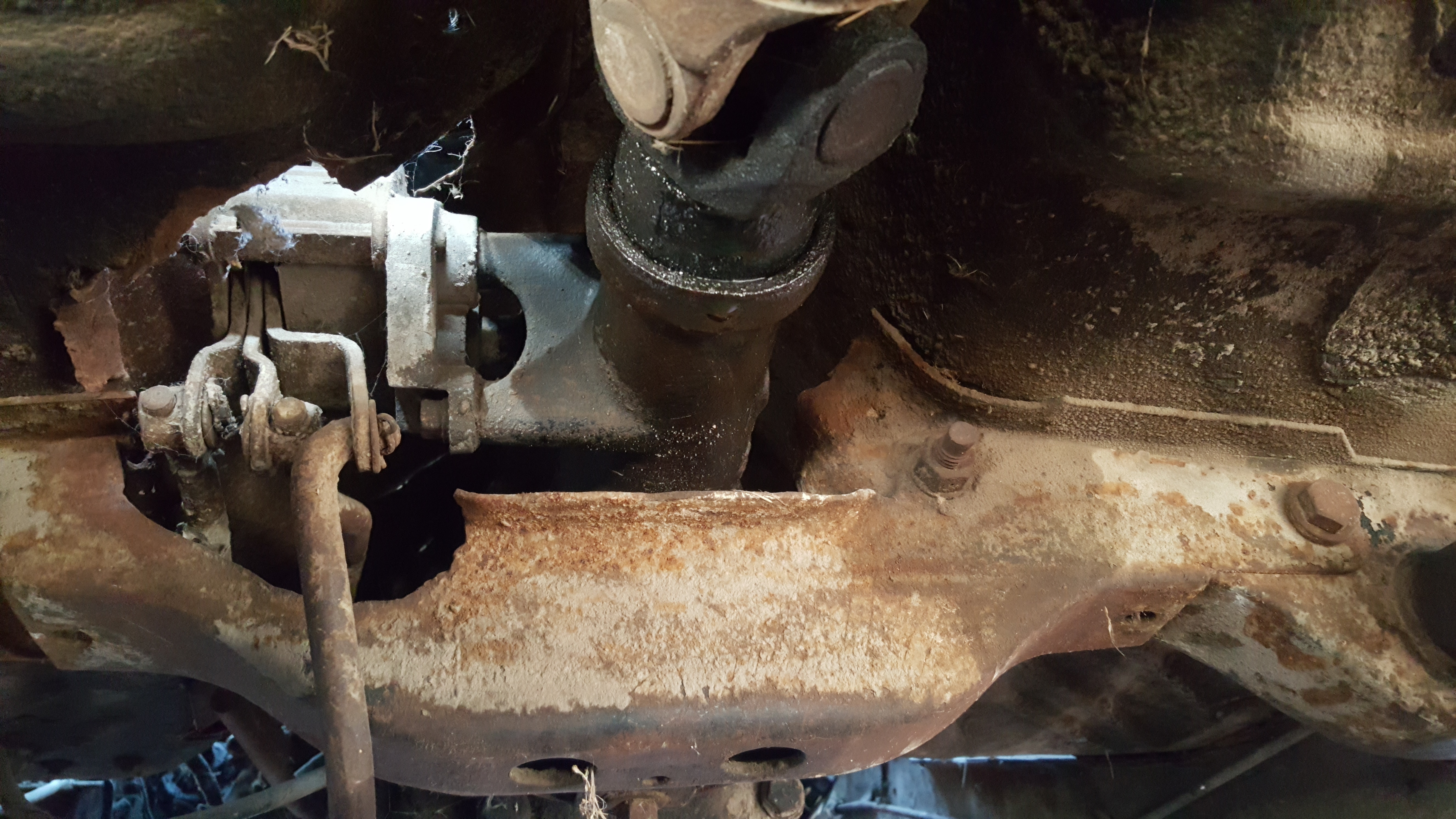 Pour je ne sais quelle raison, ils ont découpé la partie tunnel du longeron et du coups de le longeron ne tiens plus que par le support de boîte de vitesse :o
