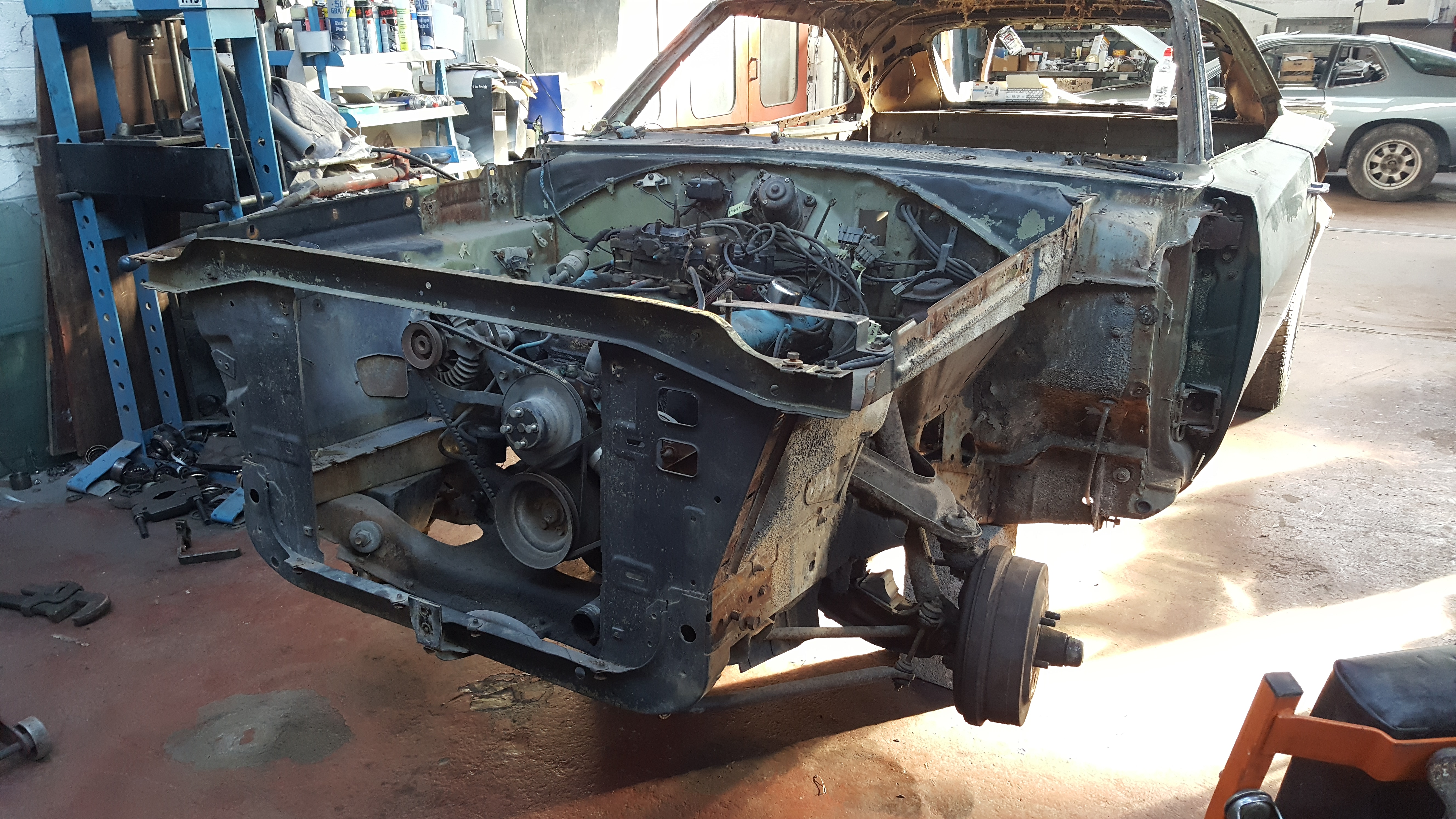 Je vais démonter les portes bientôt pour pouvoir souder des renfort dans tout les sens et soudé un renfort sur la traverse avant d'enlever le support de boîte de vitesse pour que tout reste bien en place