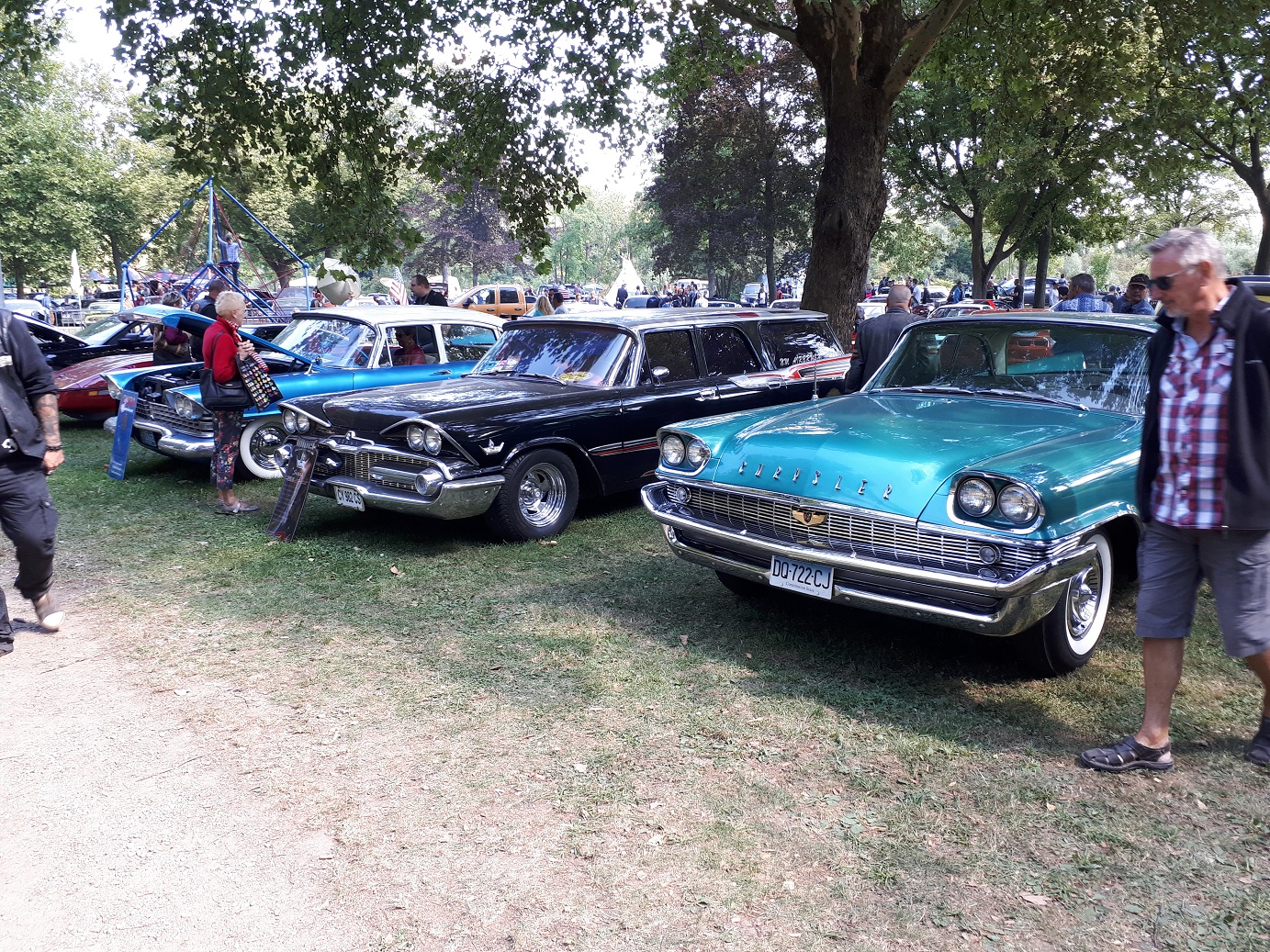 Photos pas géniales pour cet alignement de 3 Mopar 1958 et 1959. On fait c'qu'on peut...