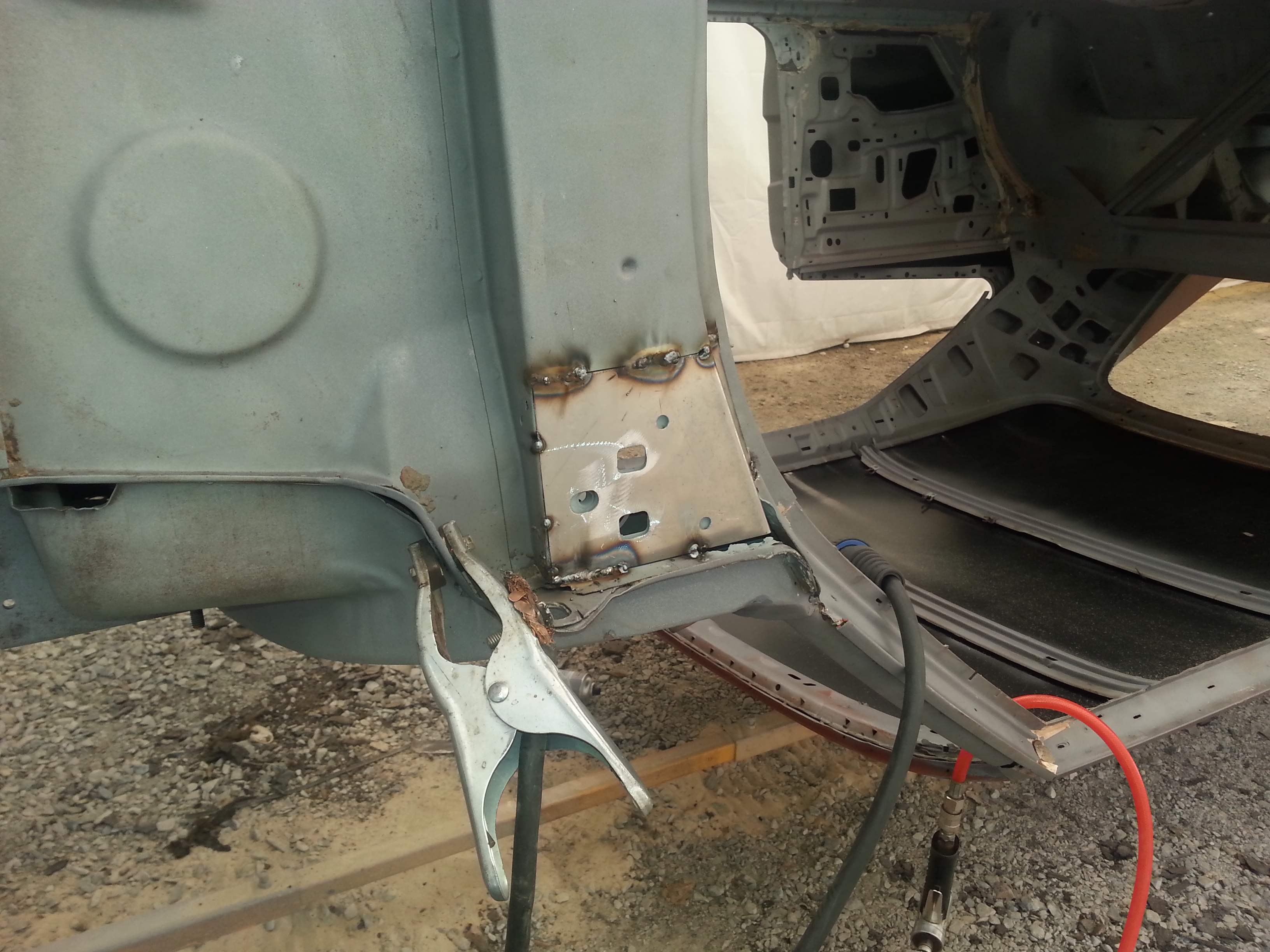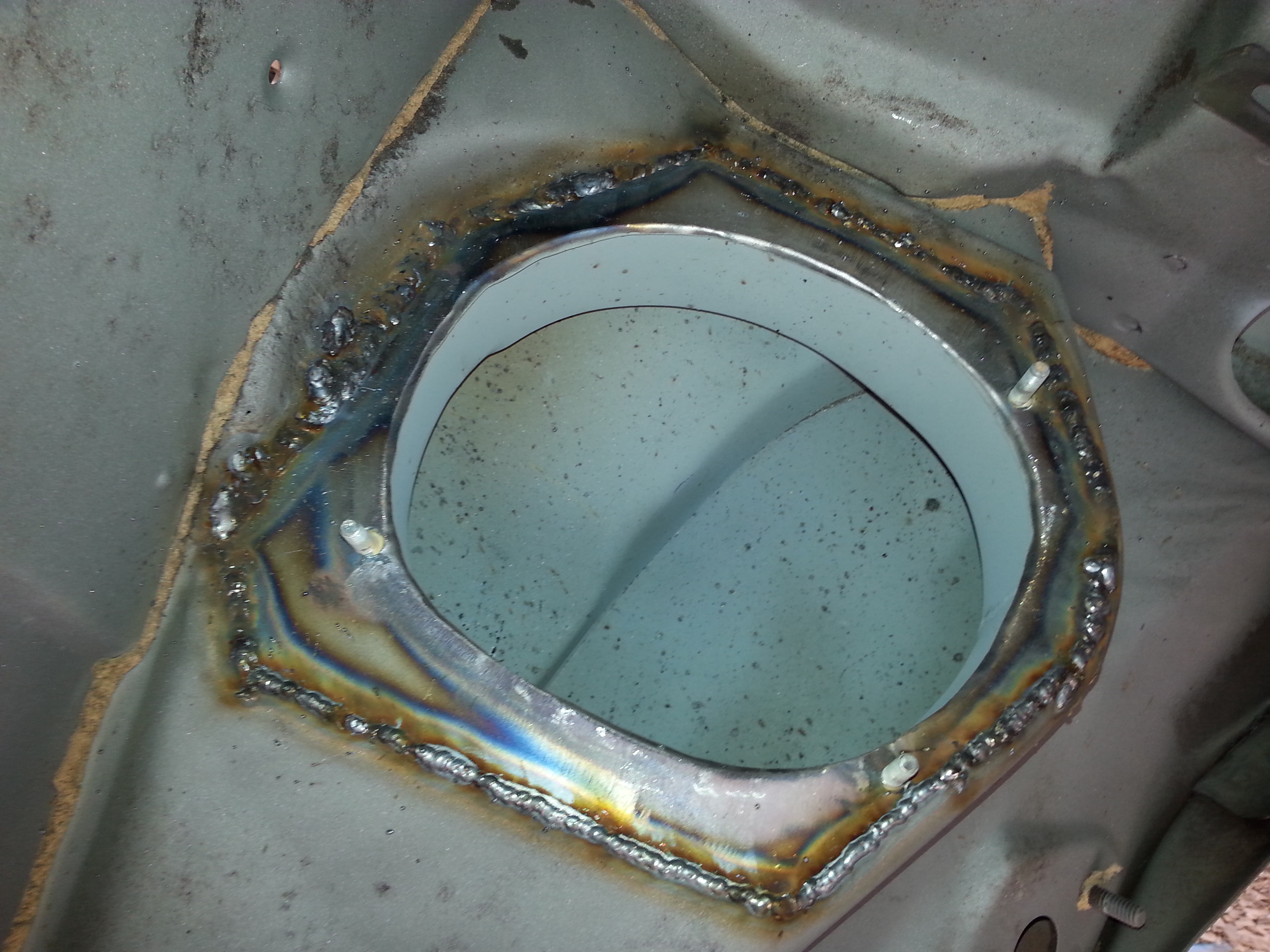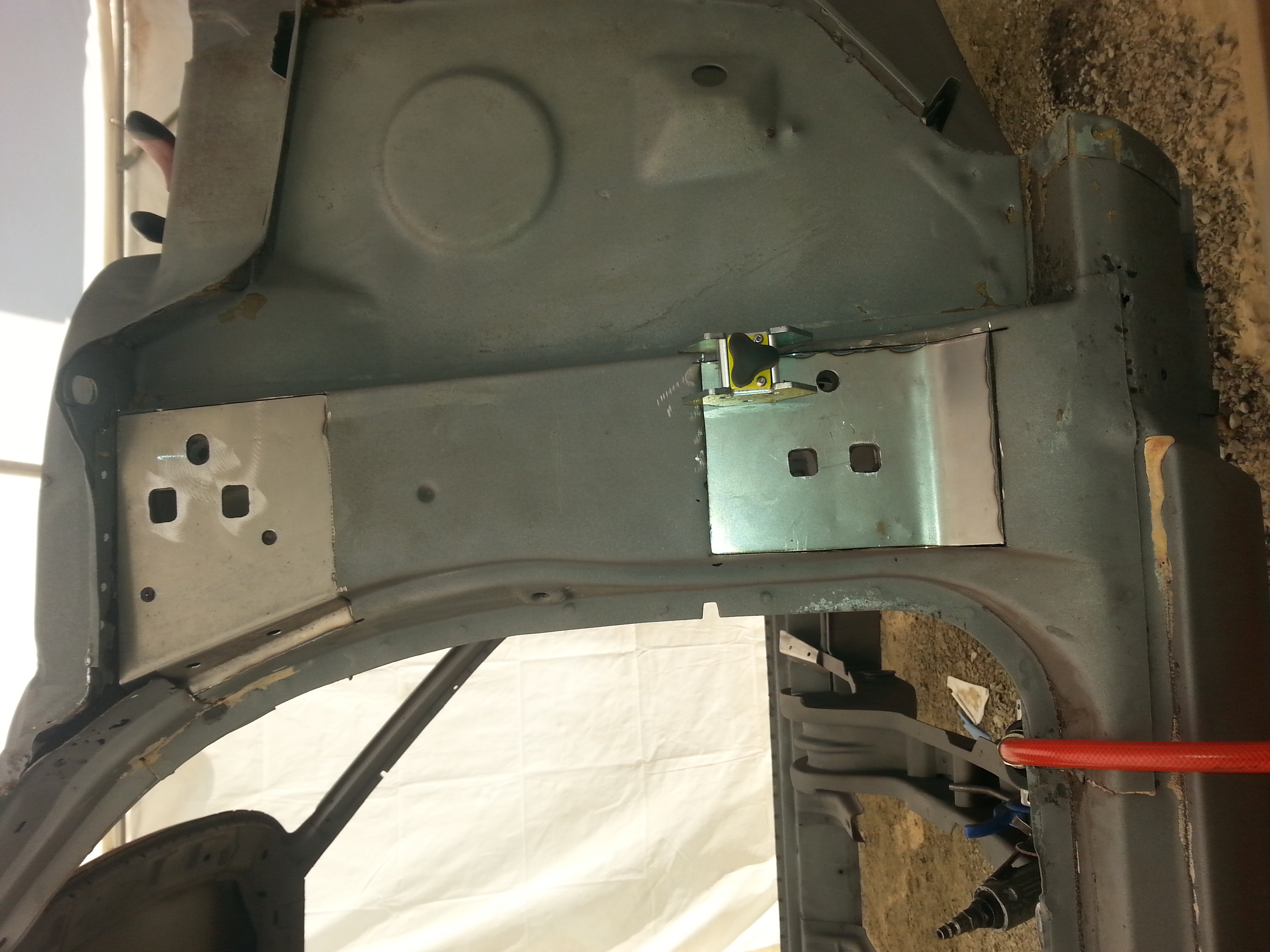 soudure de la goulotte d'entrée d'air sous le tableau de bord à gauche