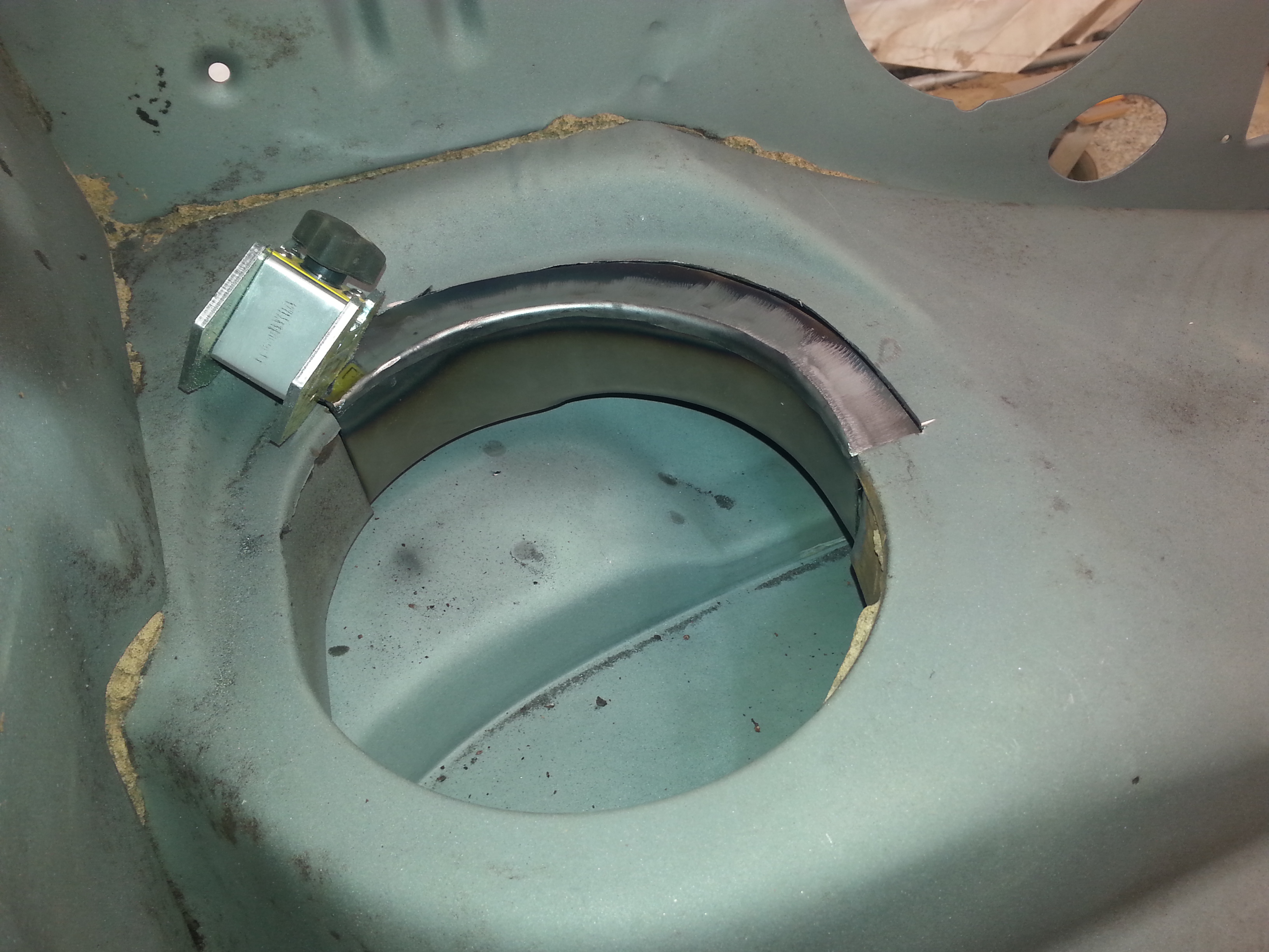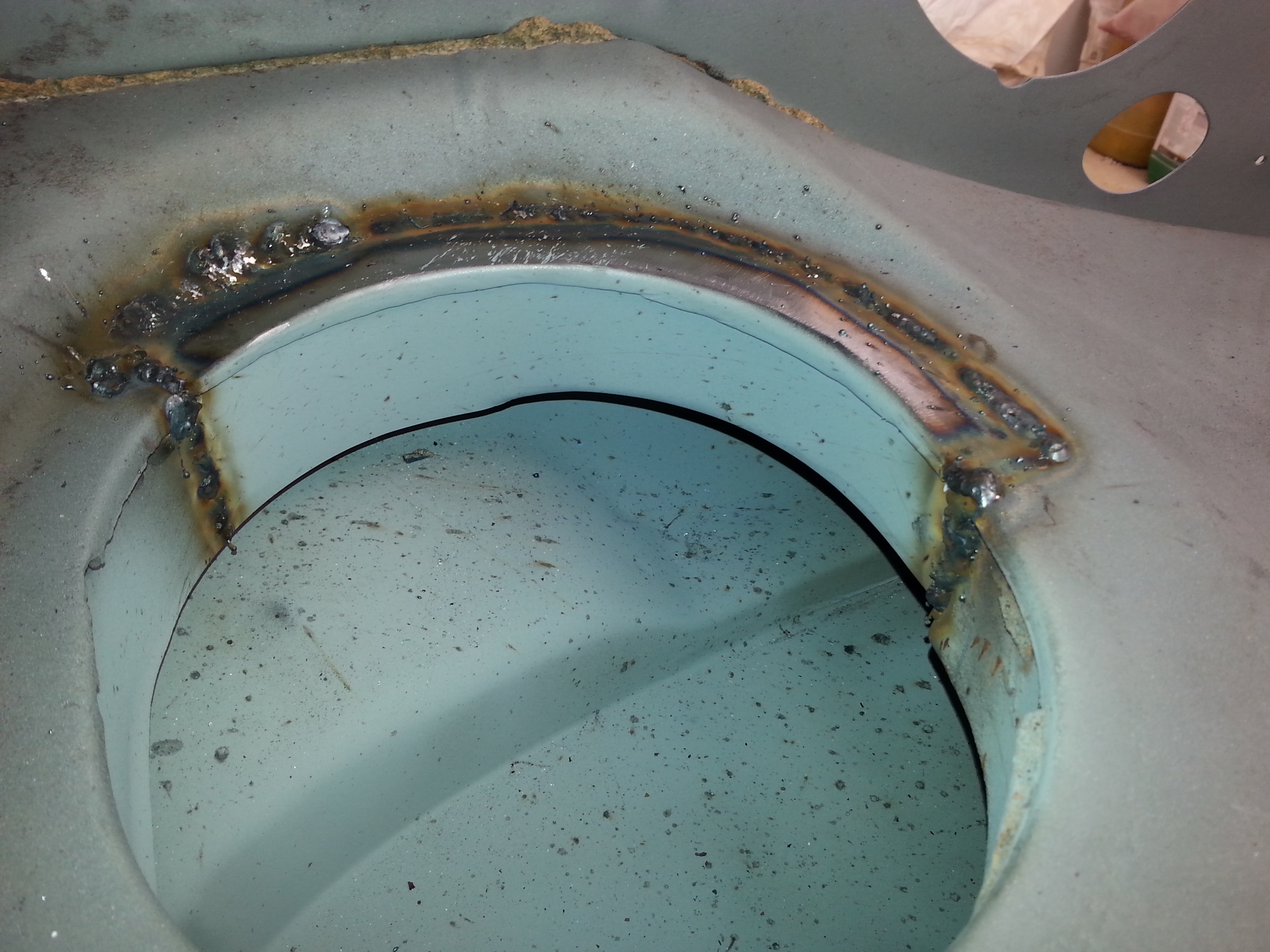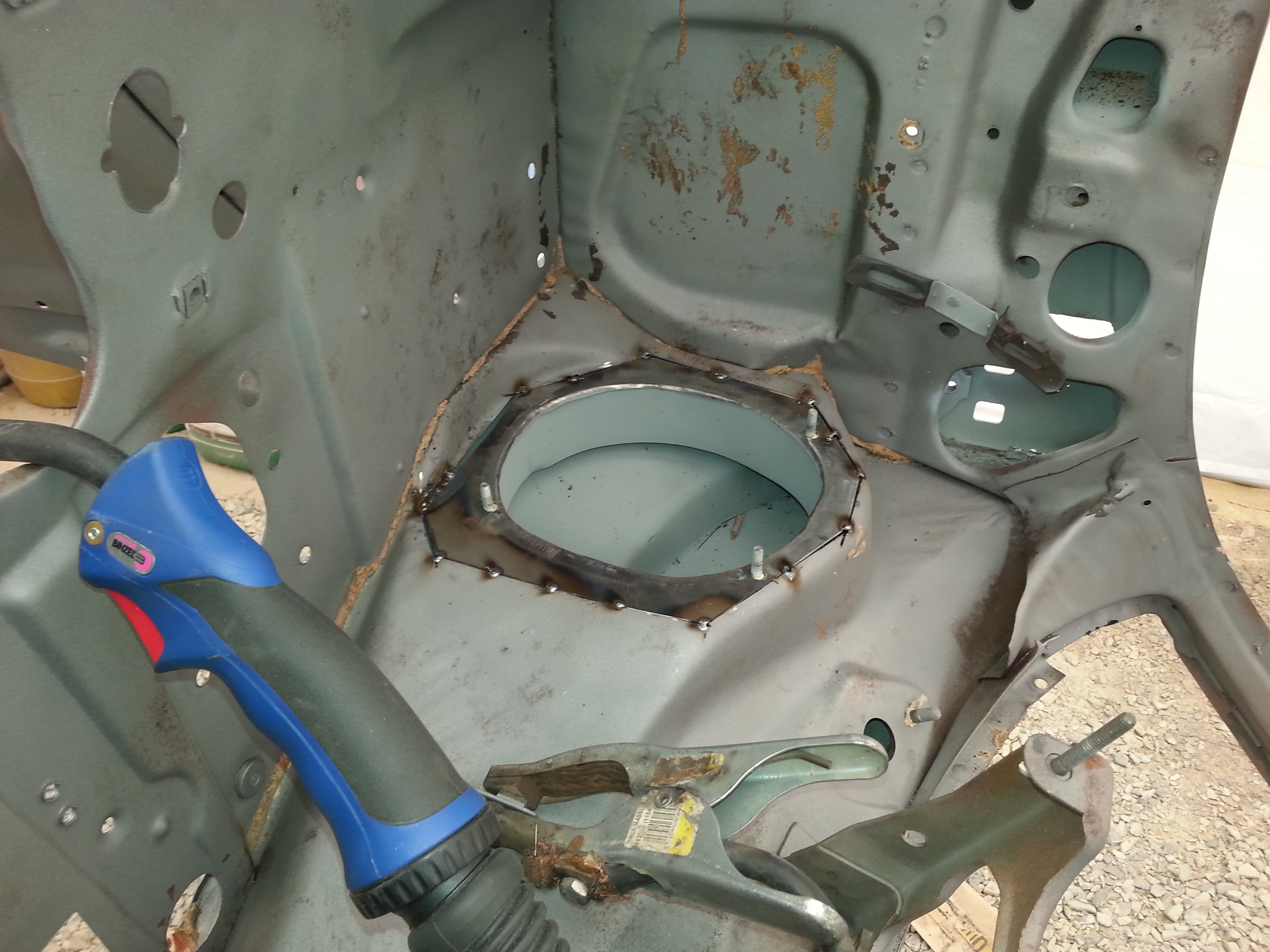 soudure de la goulotte d'entrée d'air sous le tableau de bord à gauche