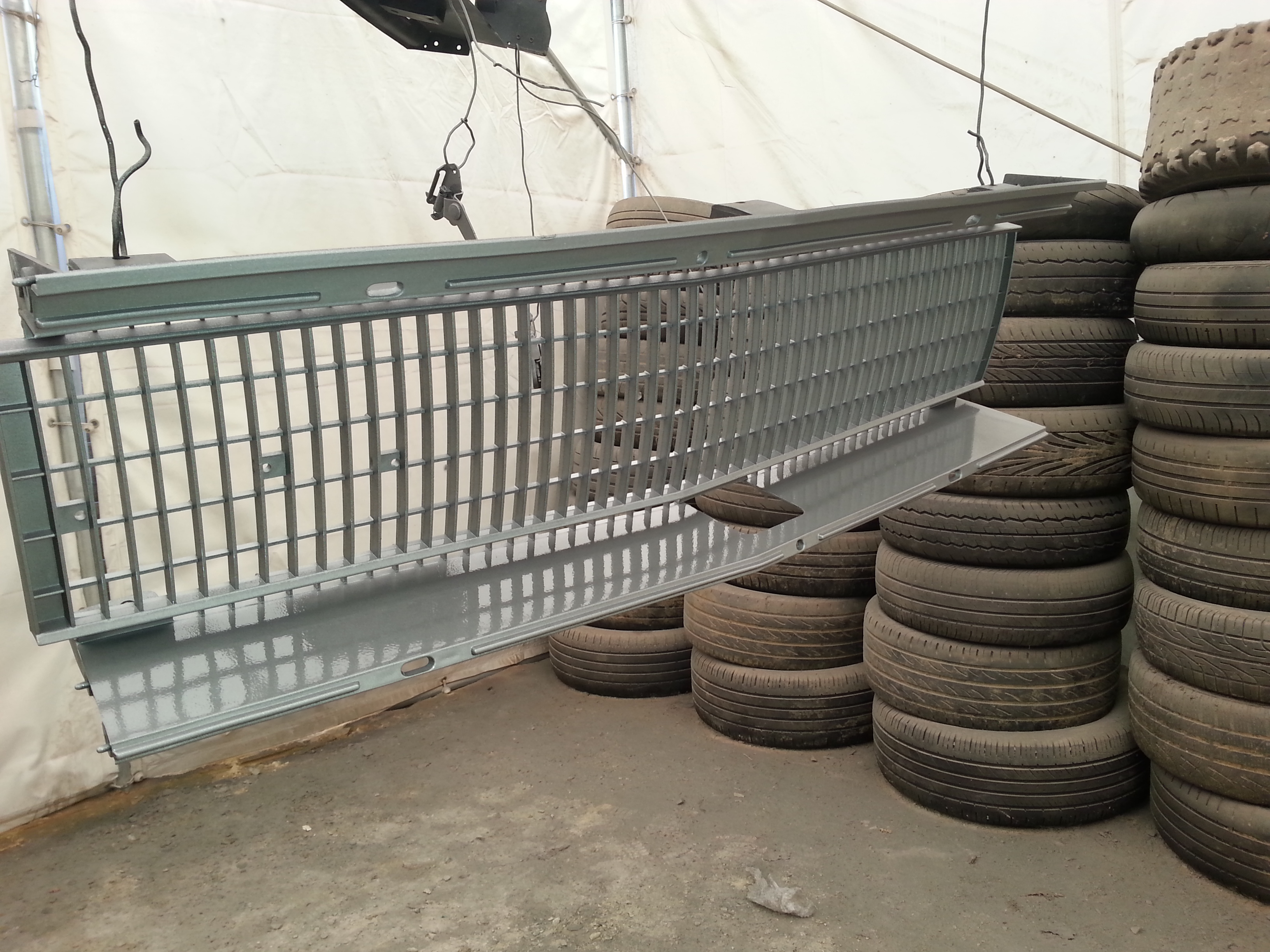 suite avec la première étape dans la peinture de la grille calandre: le gris.