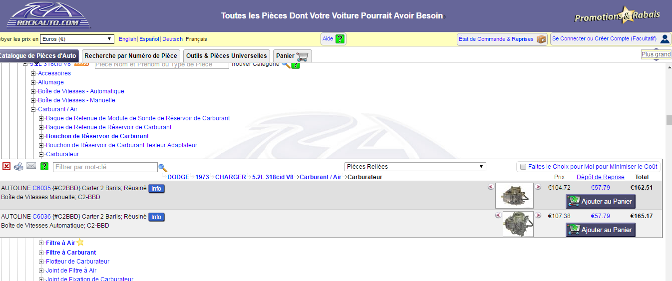 J'ai un doute pour commander mon carbu sur rockauto, je ne trouve pas les mêmes ref.