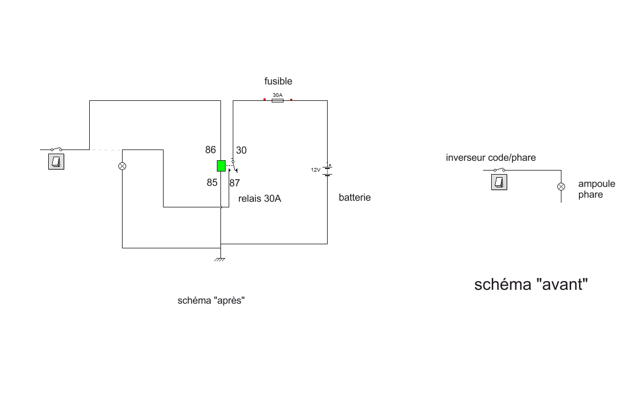 Tu peux très bien câbler sans attendre les nouveaux phares, même avec les "anciens" c'est mieux avec un relais, ça évite d'envoyer tous les ampères dans de "vieux" contacteurs, inverseurs, etc...